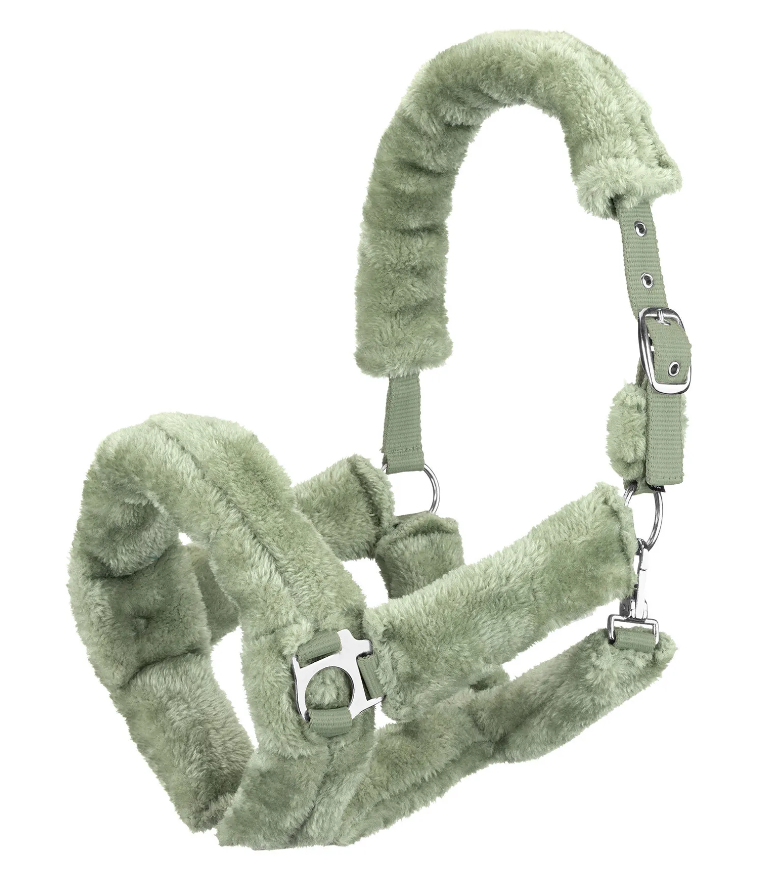 Licol moelleux entièrement doublé de polaire Teddy. Boucles rembourrées et placées de façon à éviter les frottements et les pressions. Têtière réglable. Bouclerie dorée en MA et argentée en HN, OB, NU, NA, A et S. Licol 100 % polypropylène, polaire Teddy 100 % polyester.