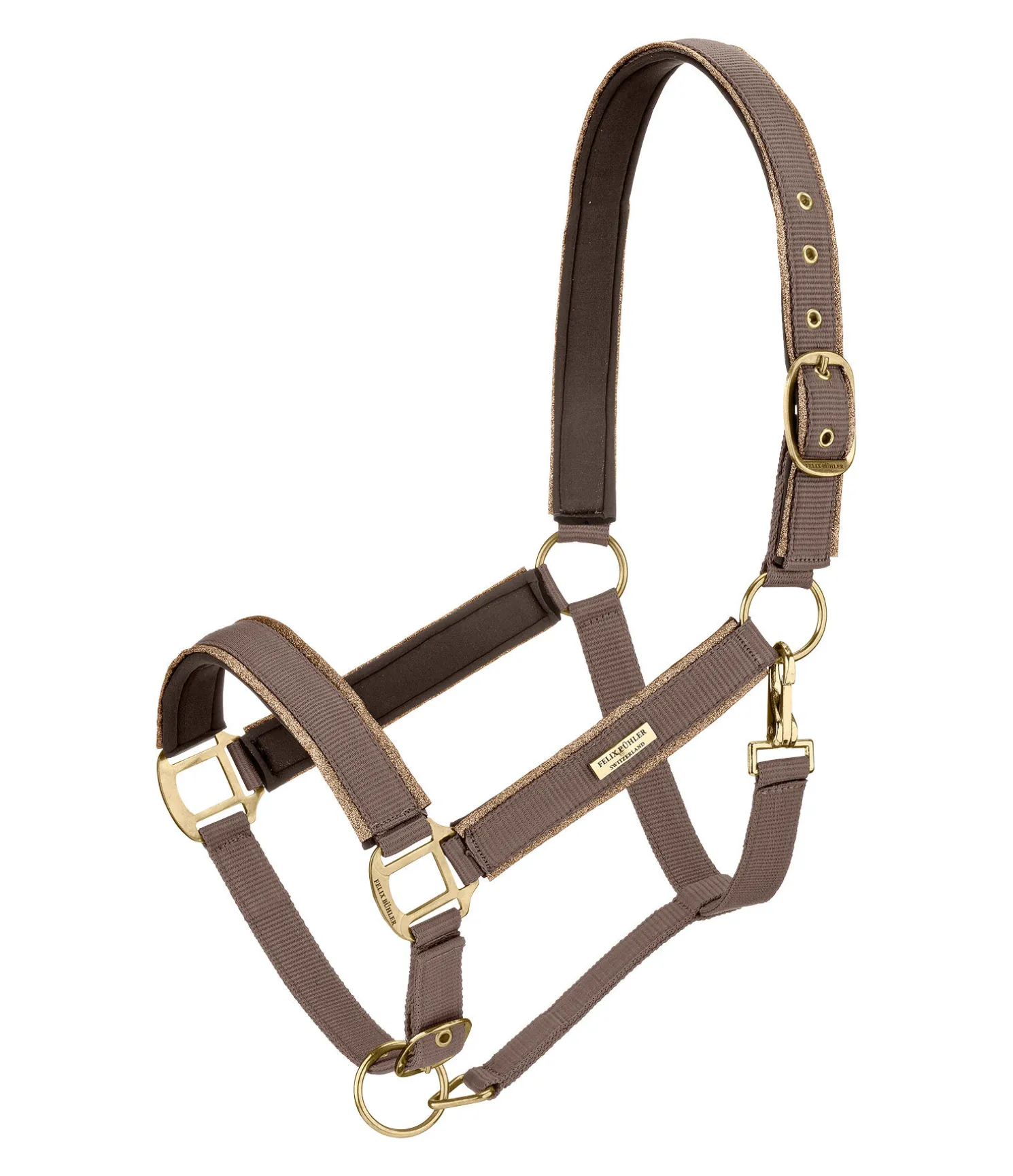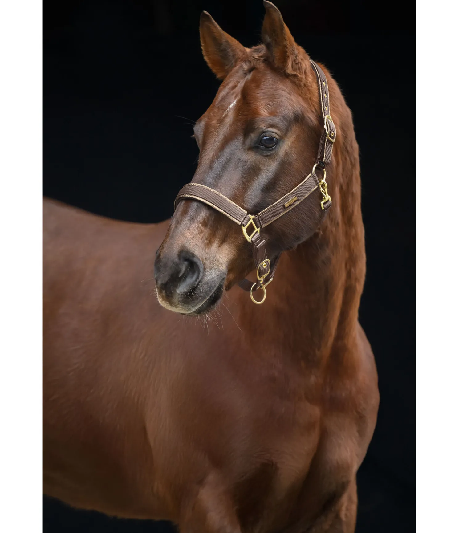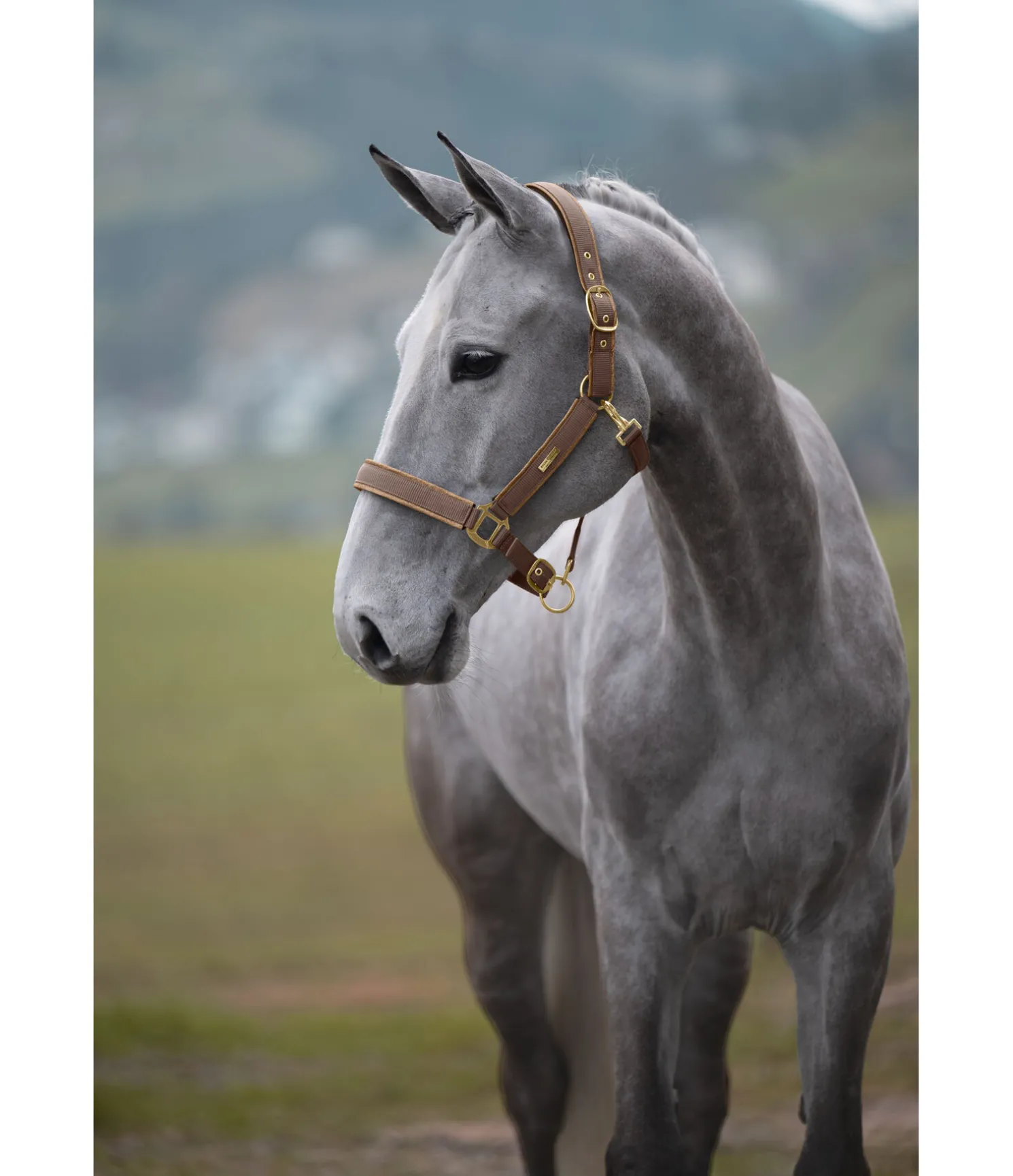 Licol chic avec passepoil scintillant et bouclerie de couleur assortie. Têtière, muserolle et montants avec doublure douce en caoutchouc chloroprène pour un confort maximal. Plaque métallique discrète avec logo gravé sur le montant gauche. Têtière et muserolle réglables. 100 % polypropylène.
