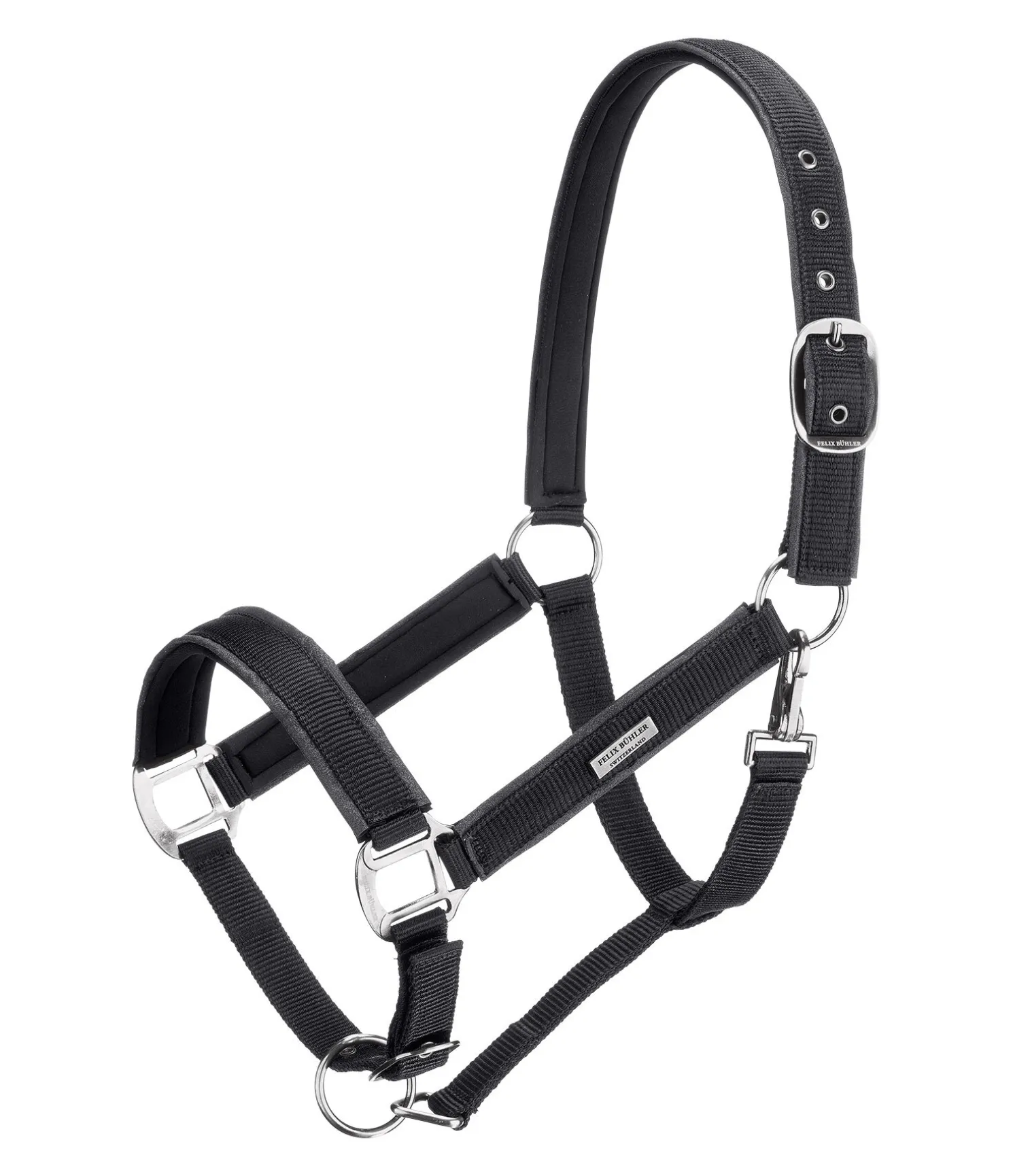 Licol chic avec passepoil scintillant et bouclerie de couleur assortie. Têtière, muserolle et montants avec doublure douce en caoutchouc chloroprène pour un confort maximal. Plaque métallique discrète avec logo gravé sur le montant gauche. Têtière et muserolle réglables. 100 % polypropylène.