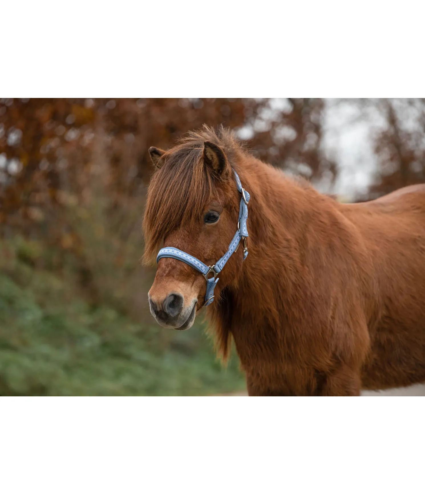 Licol avec motif nordique, pas uniquement réservé aux poneys islandais. Têtière, montants et muserolle avec doublure moelleuse. Têtière et muserolle réglables. Licol 100 % polypropylène, doublure 100 % polyester