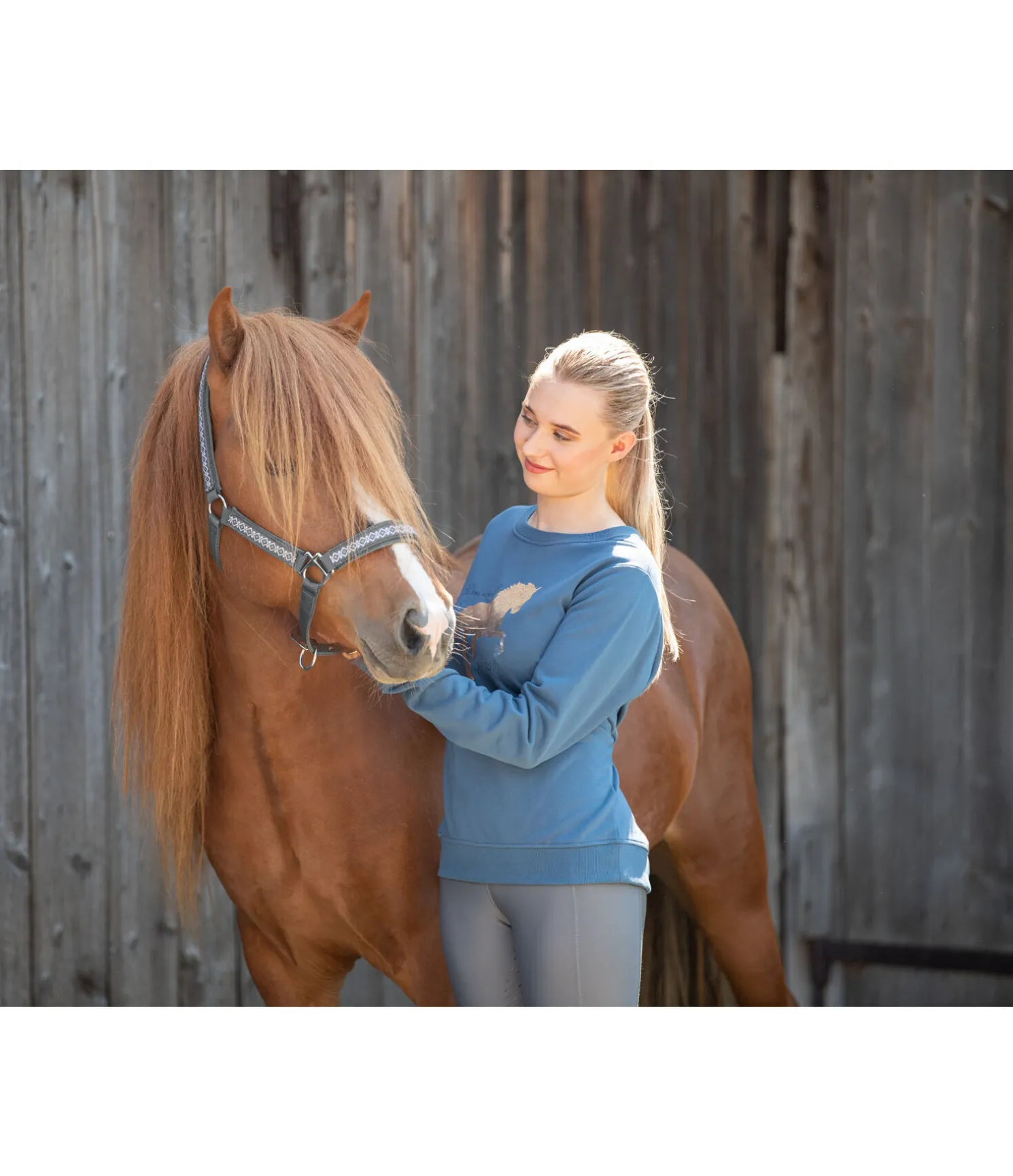 Licol avec motif nordique, pas uniquement réservé aux poneys islandais. Têtière, montants et muserolle avec doublure moelleuse. Têtière et muserolle réglables. Licol 100 % polypropylène, doublure 100 % polyester
