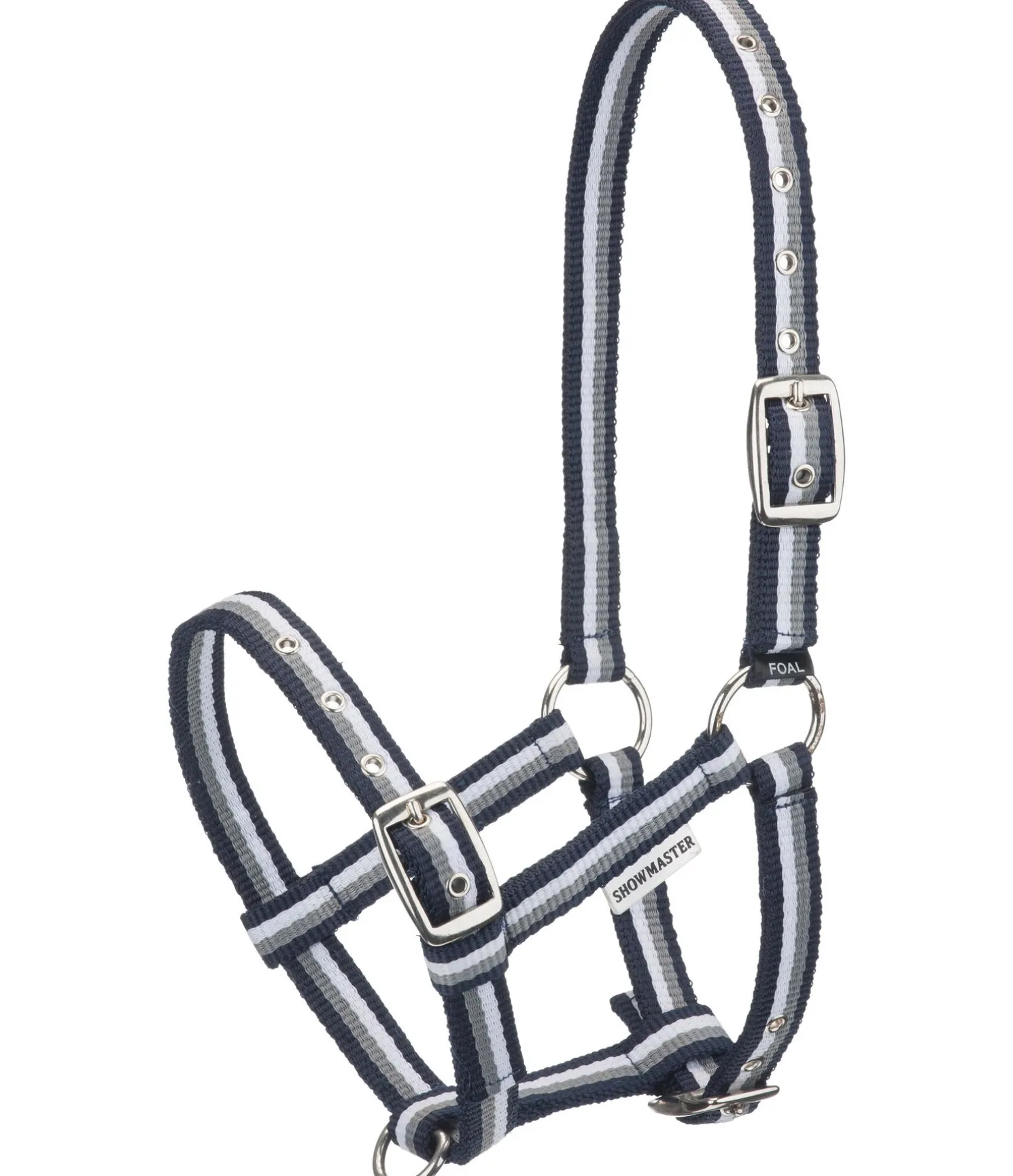 Licol pour poulains aux rayures colorées, idéal pour les poulains en croissance grâce à la têtière, muserolle et sous-gorge réglables. Bouclerie argentée en GL et NB et dorée en CO. 100 % polypropylène.