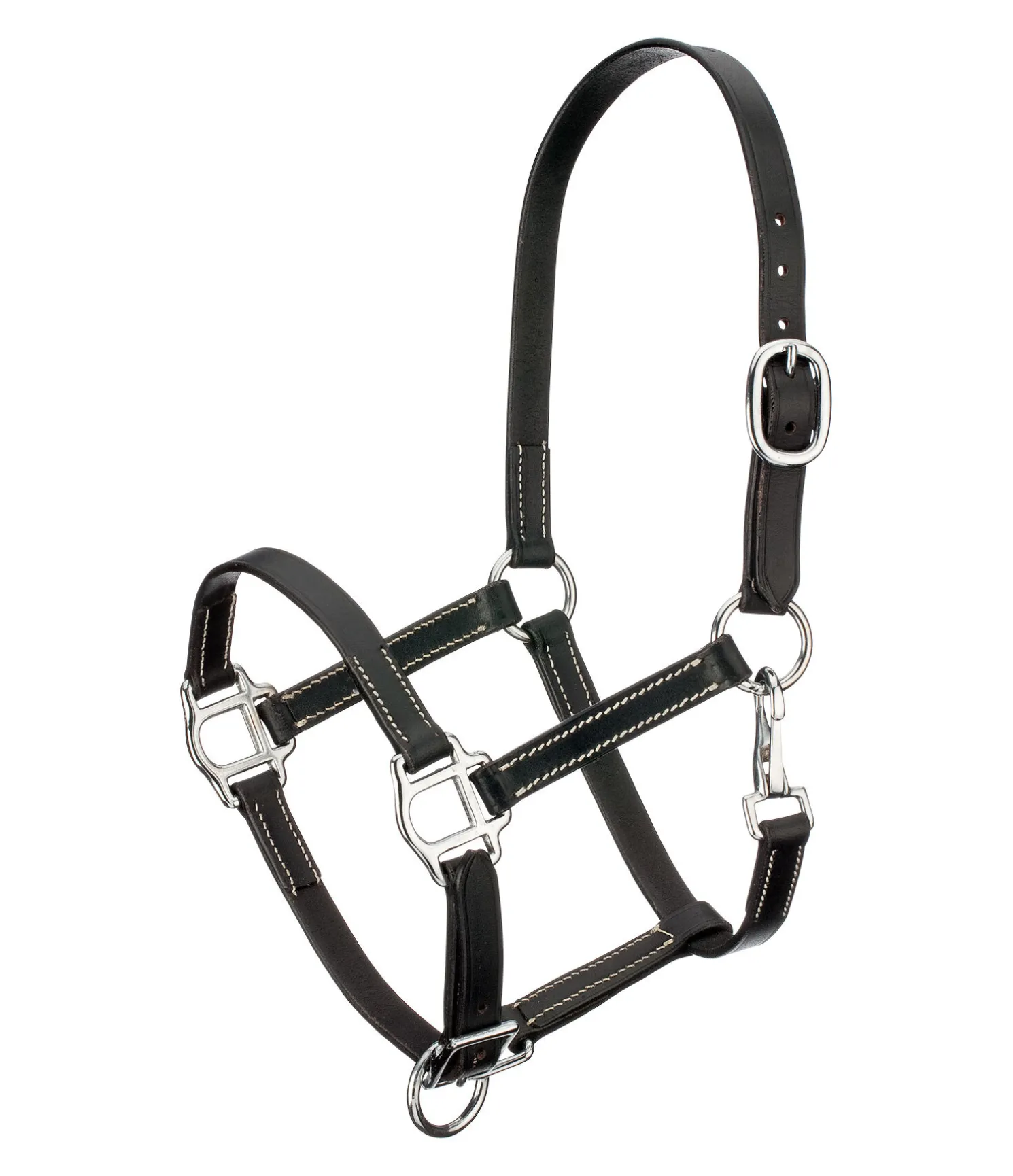 Licol en cuir gras classique dans une coupe raffinée. Têtière et muserolle réglables. Bouclerie argentée.