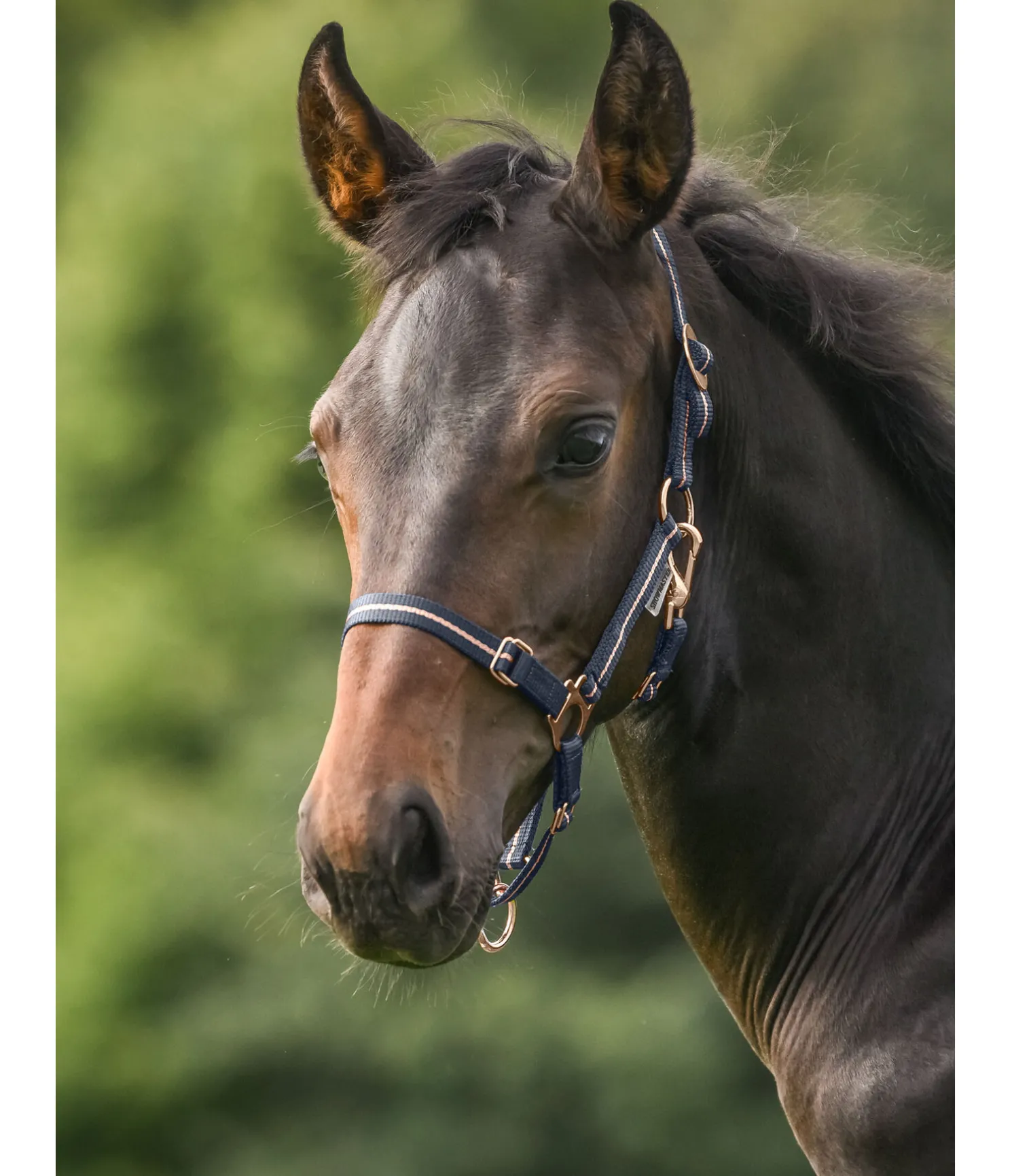 Licol tendance avec fil métallisé scintillant et bouclerie assortie. Têtière, muserolle et sous-gorge réglables en continu. 100 % polypropylène.