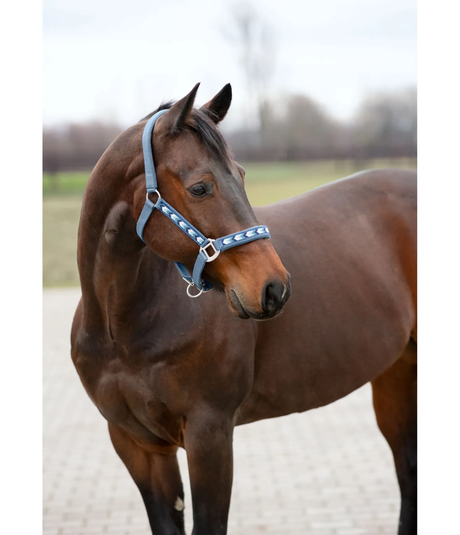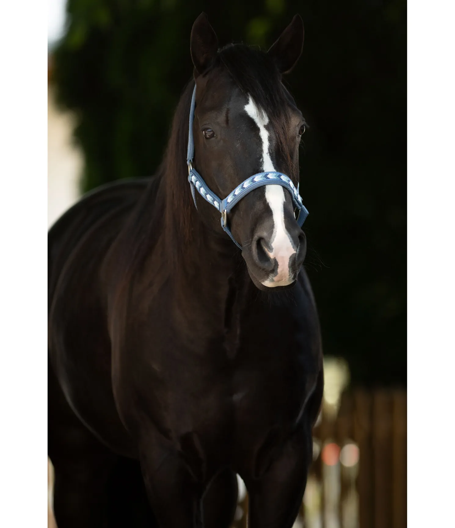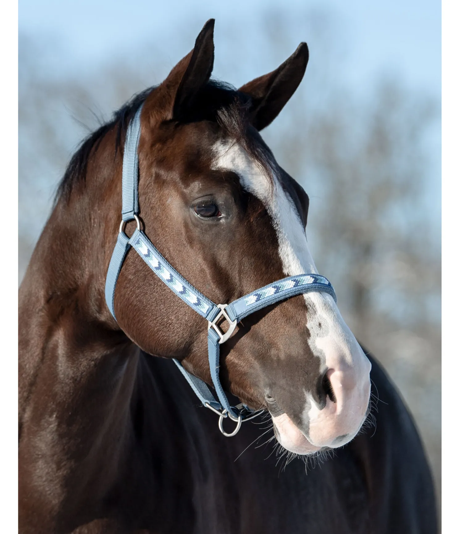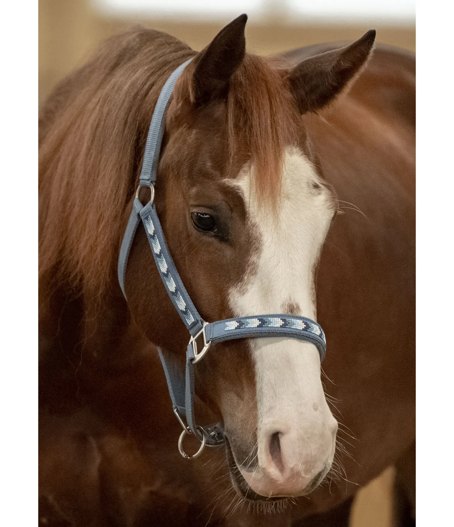 Licol en nylon avec décoration sophistiquée en perles. Rembourrage doux sur la muserolle et la têtière. Muserolle et têtière réglables.