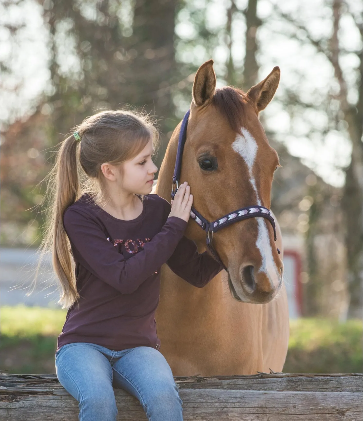 Licol en nylon avec décoration sophistiquée en perles. Rembourrage doux sur la muserolle et la têtière. Muserolle et têtière réglables.