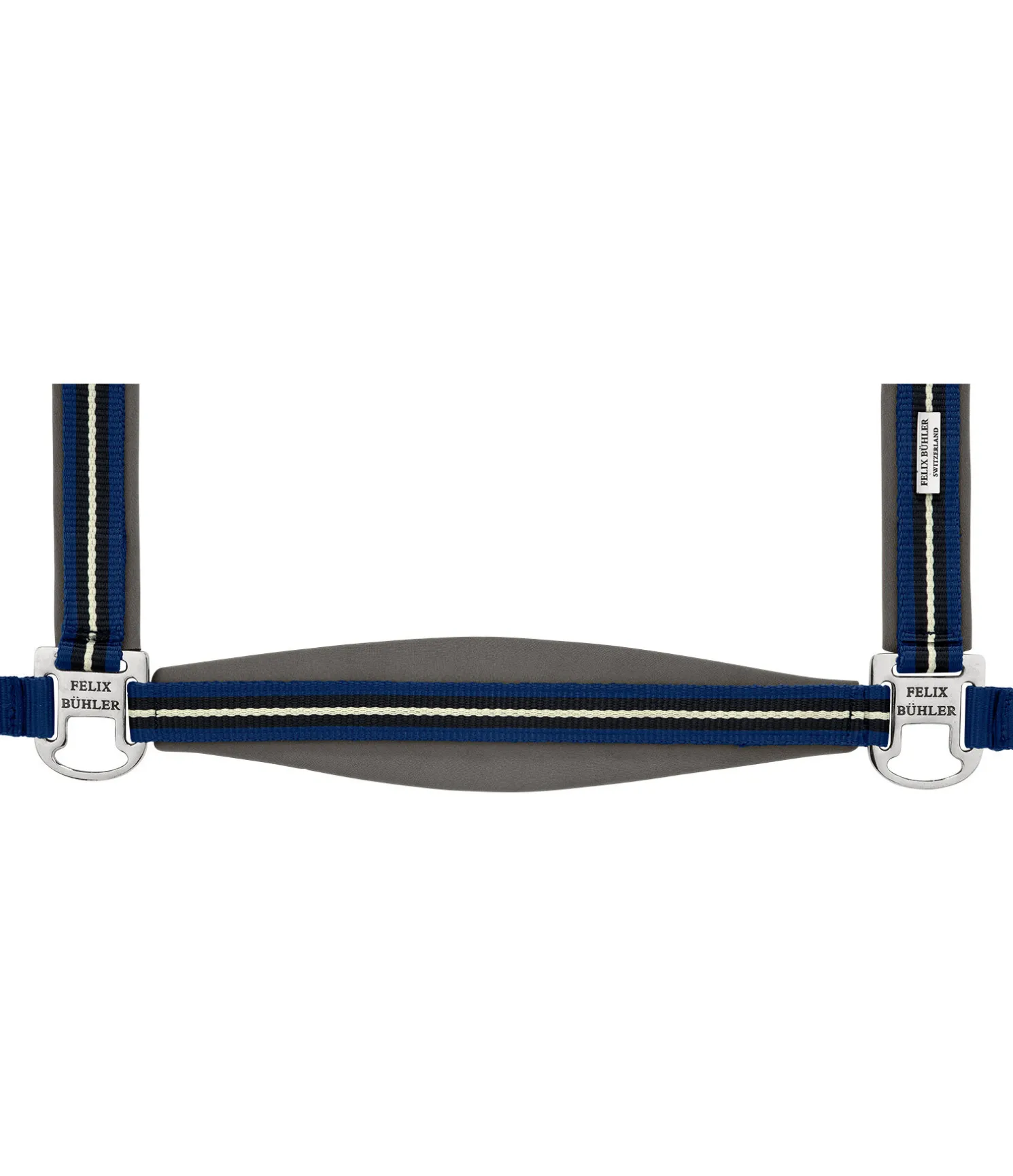 Licol avec têtière doublée en polaire Teddy douce. Sportswear. Muserolle et montants doublés en caoutchouc-chloroprène doux. Design tendance à rayures tricolore orné d’une petite plaque avec logo. Têtière doublement réglable et muserolle réglable. Bouclerie en métal de couleur assortie. Licol 100 % polypropylène, polaire Teddy 100 % polyester.