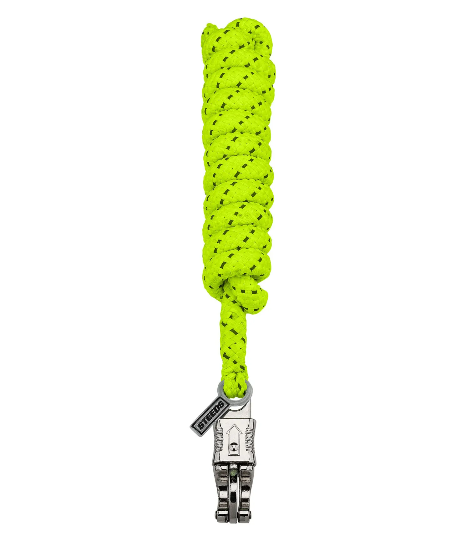 Longe avec fil réfléchissant pour plus de sécurité dans l’obscurité. Mousqueton anti-panique argenté. Assortie au licol réfléchissant STEEDS Shiny 340 192. 2 m. 100 % polyester.