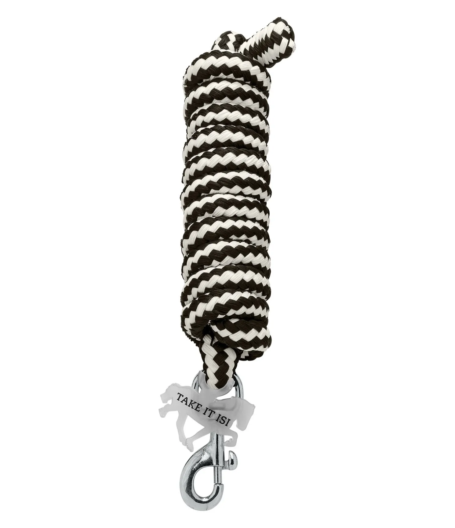 Longe longue avec mousqueton tressée de plusieurs couleurs. Médaillon en caoutchouc avec logo. Bouclerie argentée. 100 % polyester.