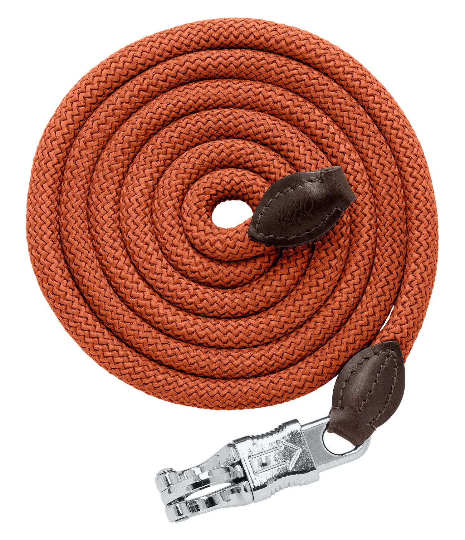 Longe ronde agréable et souple avec extrémités en cuir pour un look particulièrement soigné. Assortie au licol Kate (réf.: 440 499) et Meghan (réf.: 440 685). Avec mousqueton anti-panique argenté. 2 m. 100 % polypropylène.