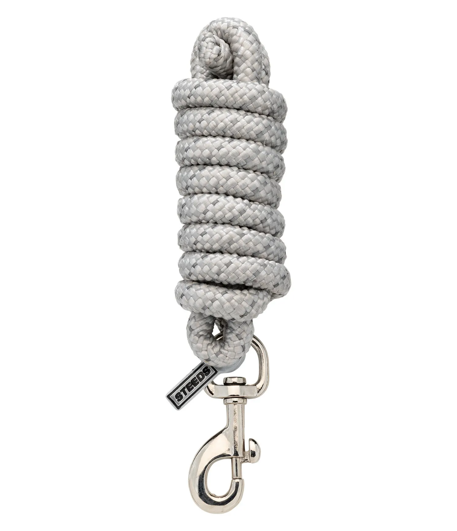Longe avec fil réfléchissant pour une meilleure visibilité dans l’obscurité: Mousqueton simple argenté. Assortie au licol réfléchissant STEEDS Shiny 340 192. 2 m. 100 % polyester.
