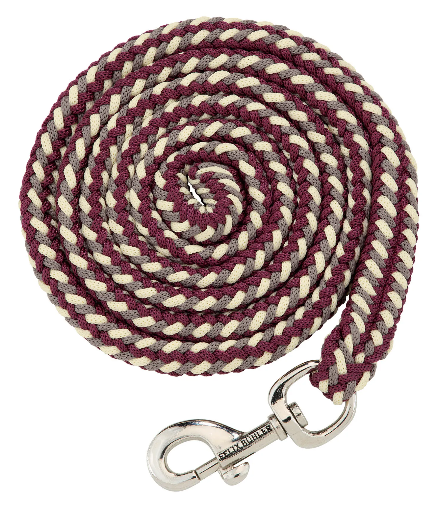 Longe tressée tricolore solide avec mousqueton. 2 m. 100 % polyester. Assortie au licol 310056.