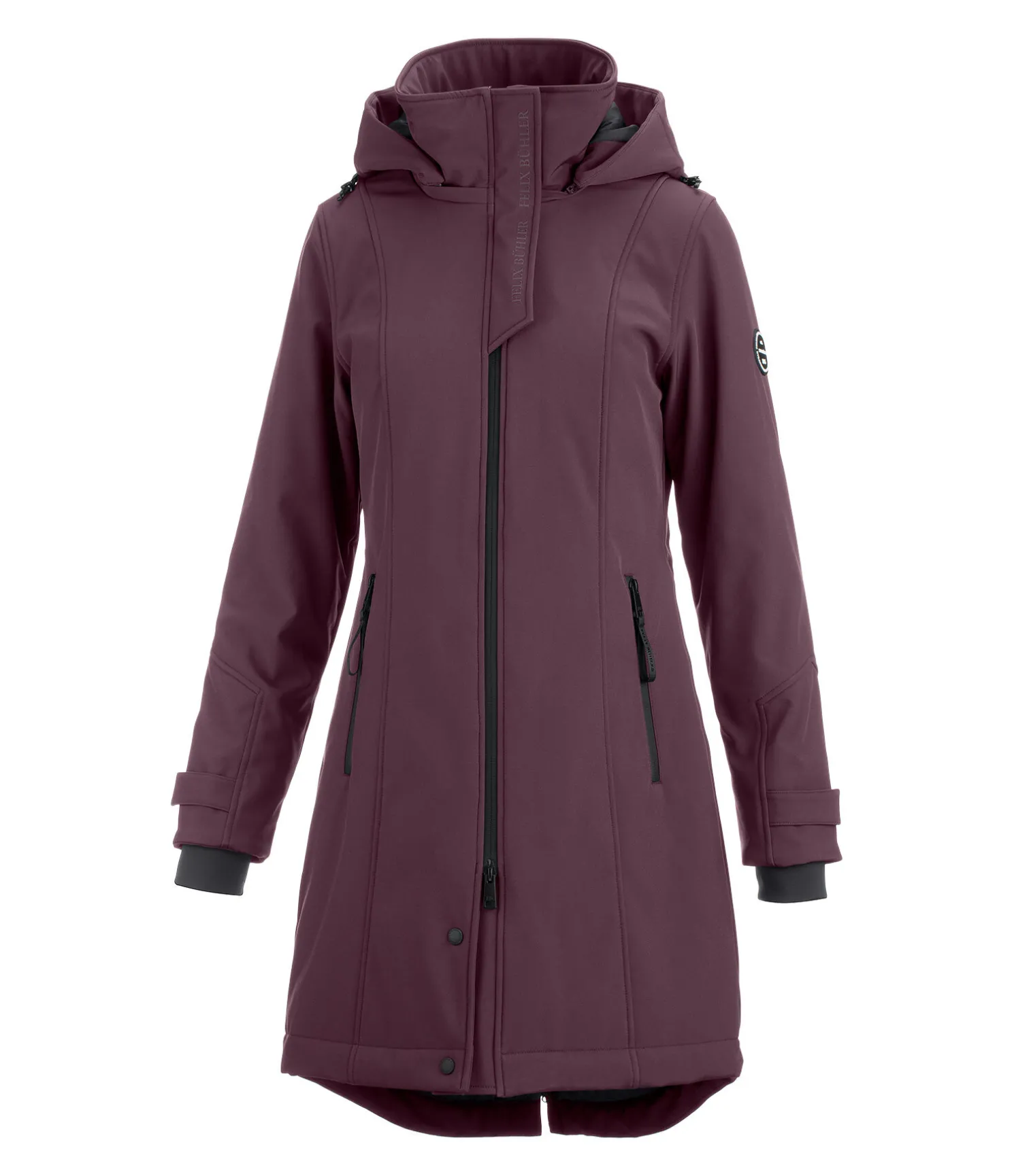 Manteau softshell déperlant et coupe-vent. Col montant avec capuche doublée en jersey, amovible et réglable. Bouton-pression pour fixer la capuche dans le dos. Fermeture à glissière double sens étanche. 2 poches avant zippées. Bas des manches ajustable, élastiqué et coupe-vent. Taille réglable. 1 fente cavalière zippée à l’arrière. Doublure matelassée imitation duvet. 1 poche intérieure zippée. Badge sur la manche et imprimé Felix Bühler sur le col. 94 % polyester, 6 % élasthanne.