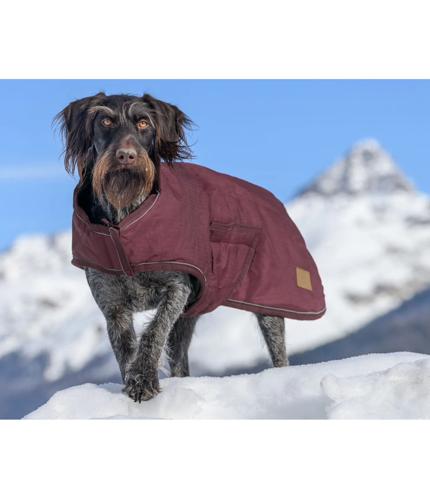 Manteau d’hiver imperméable (résistance 600 deniers, imperméabilité 3.000 mm, respirabilité 3.000 g/m2/24h). Rembourrage chaud 400 g avec doublure lisse. Col haut. Ouverture dans le dos pour passer la laisse. Passepoil réfléchissant pour plus de sécurité. 100 % polyester.