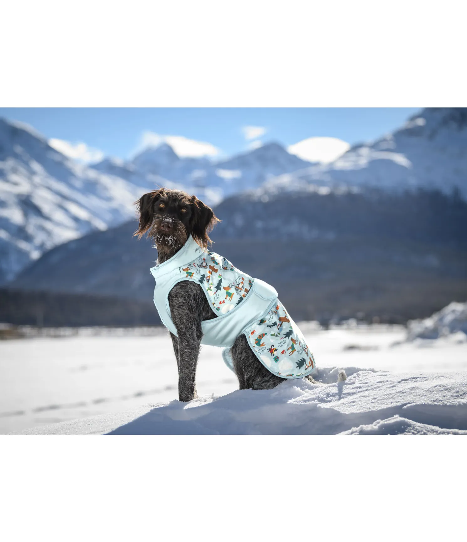 Manteau d’hiver imperméable (3.000 mm), respirant (MVTR 3.000) avec un imprimé hivernal et des détails réfléchissants sur le liseré. Garnissage chaud de 120 g avec intérieur lisse pour un confort optimal au niveau du torse et du poitrail. Idéal pour les journées d’automne ou d’hiver froides et humides. Dessus en polyester Oxford 600 deniers robuste et résistant à la déchirure. Réglable au cou par cordon de serrage et au poitrail par patte auto-agrippante fermée dans le dos pour un parfait ajustement. Sur le dos, une fermeture à glissière étanche permet d’accéder au harnais. Sur le col, une ouverture est prévue pour le collier. Des courroies de cuisses élastiques permettent d’éviter que le manteau ne glisse lorsque le chien s’amuse, sans pour autant le gêner. Échancré au niveau des épaules pour une plus grande liberté de mouvement. 100 % polyester.
