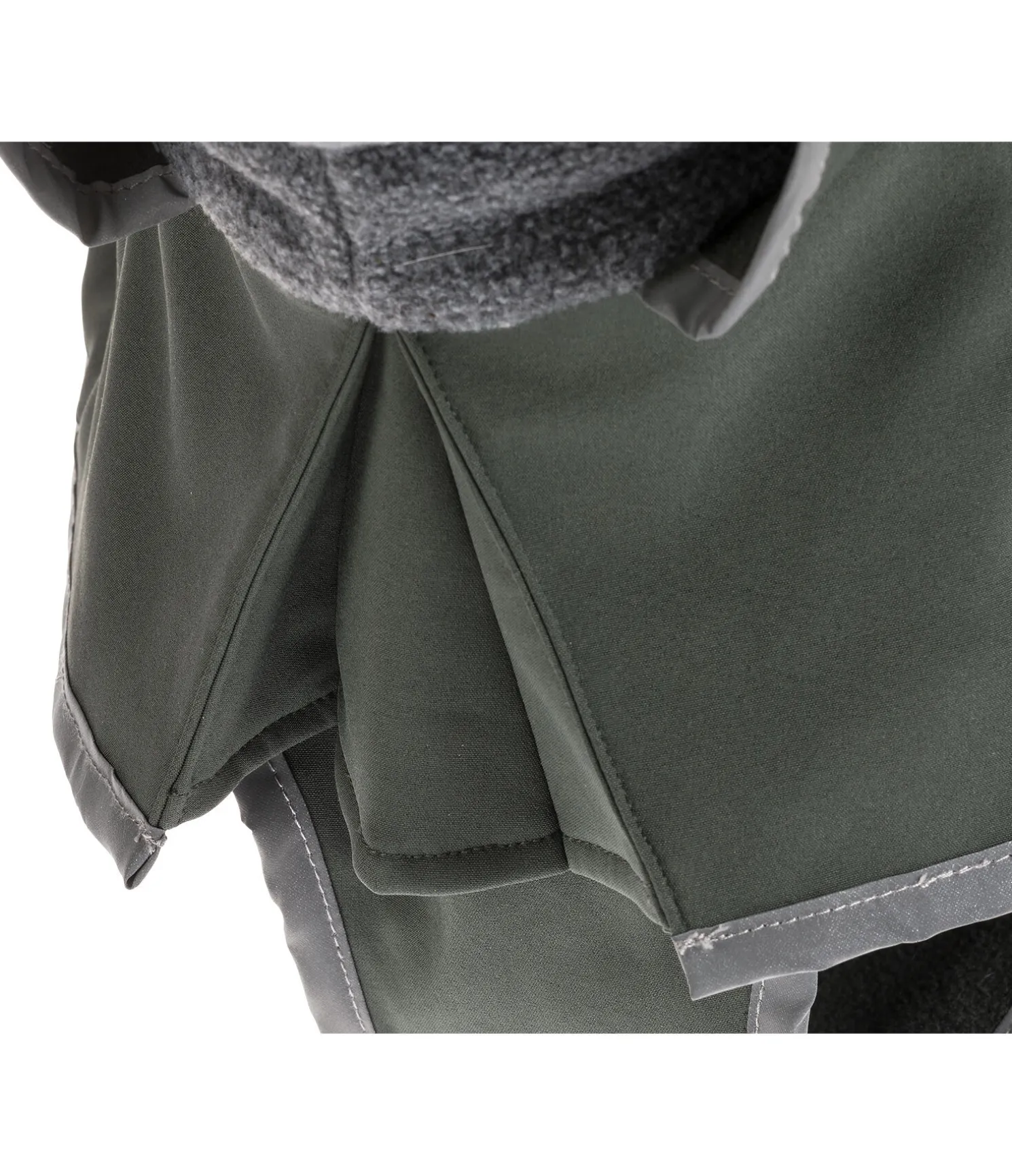 Manteau pour chien particulièrement léger, déperlant et respirant (100 deniers) en matière softshell coupe-vent. La doublure polaire molletonnée maintient au chaud. Facile à fermer grâce à une fermeture à clip sur le rabat ventral. Coupe sportive avec un grand pli d’aisance supplémentaire au poitrail pour une liberté de mouvement maximale. Convient également pour l’entraînement ou les activités d’endurance. Passepoil réfléchissant sur le pourtour pour plus de visibilité sur la route. Écusson logo également réfléchissant. Col douillet et généreux en polaire douce aspect chiné. Longueur de dos réglable par un élastique afin d’être parfaitement ajusté même avec une queue haute. Avec passage de harnais zippé étanche et courroies de cuisses élastiques. 100 % polyester.