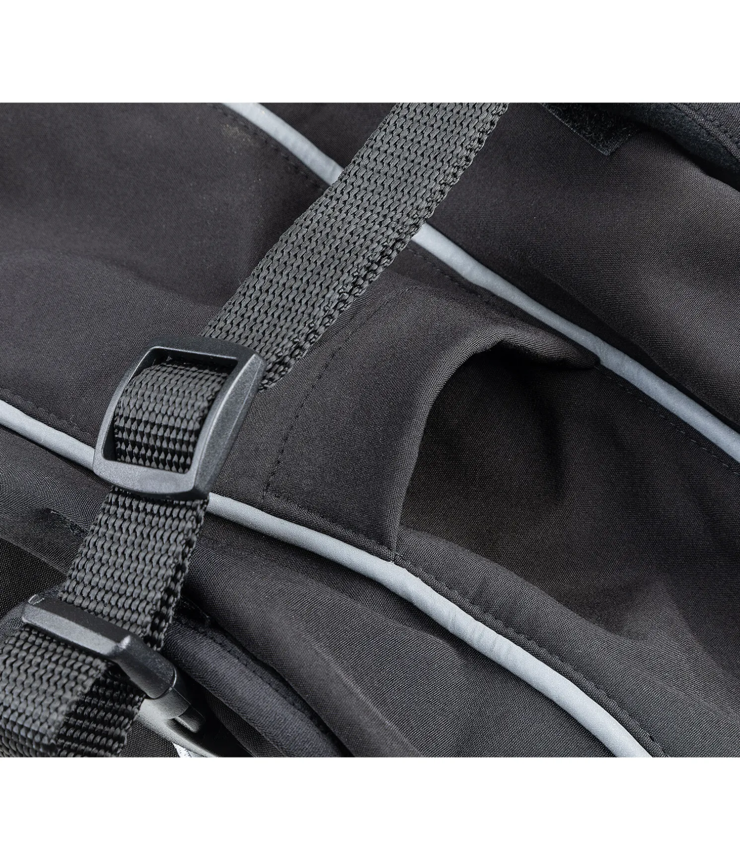 Manteau léger, déperlant et coupe-vent. Col montant et rabat ventral élastique pour protéger ton compagnon à quatre pattes sans le restreindre dans ses mouvements. Cordon de serrage élastique au-dessus de la queue pour un ajustement parfait en fonction de la taille et la morphologie. Mise en place facile et fermeture à clip réglable sur le dos. Pattes auto-agrippantes sur les côtés pour empêcher le rabat ventral de glisser. Cordon de serrage au niveau du col pour une protection maximale contre la pluie et le vent. Doublure intérieure en Iontex® pour stimuler la circulation sanguine. Permet d’éviter un refroidissement trop rapide et de maintenir la souplesse des muscles par tous les temps. Passage dissimulé pour accéder au collier ou au harnais. Nombreux détails réfléchissants pour une bonne visibilité en ville et à la tombée de la nuit. Recommandé par le fabriquant pour les corpulences minces et « normales ». Pour les corpulences plus massives avec beaucoup de poitrail et de cou, il est recommandé de commander une taille supérieure. Lavable en machine à 40°C. Ne pas mettre au sèche-linge. Matière extérieure 95 % polyester, 5 % élasthanne ; doublure au niveau du poitrail 100 % polyester ; doublure du col 85 % polyester, 15 % élasthanne.