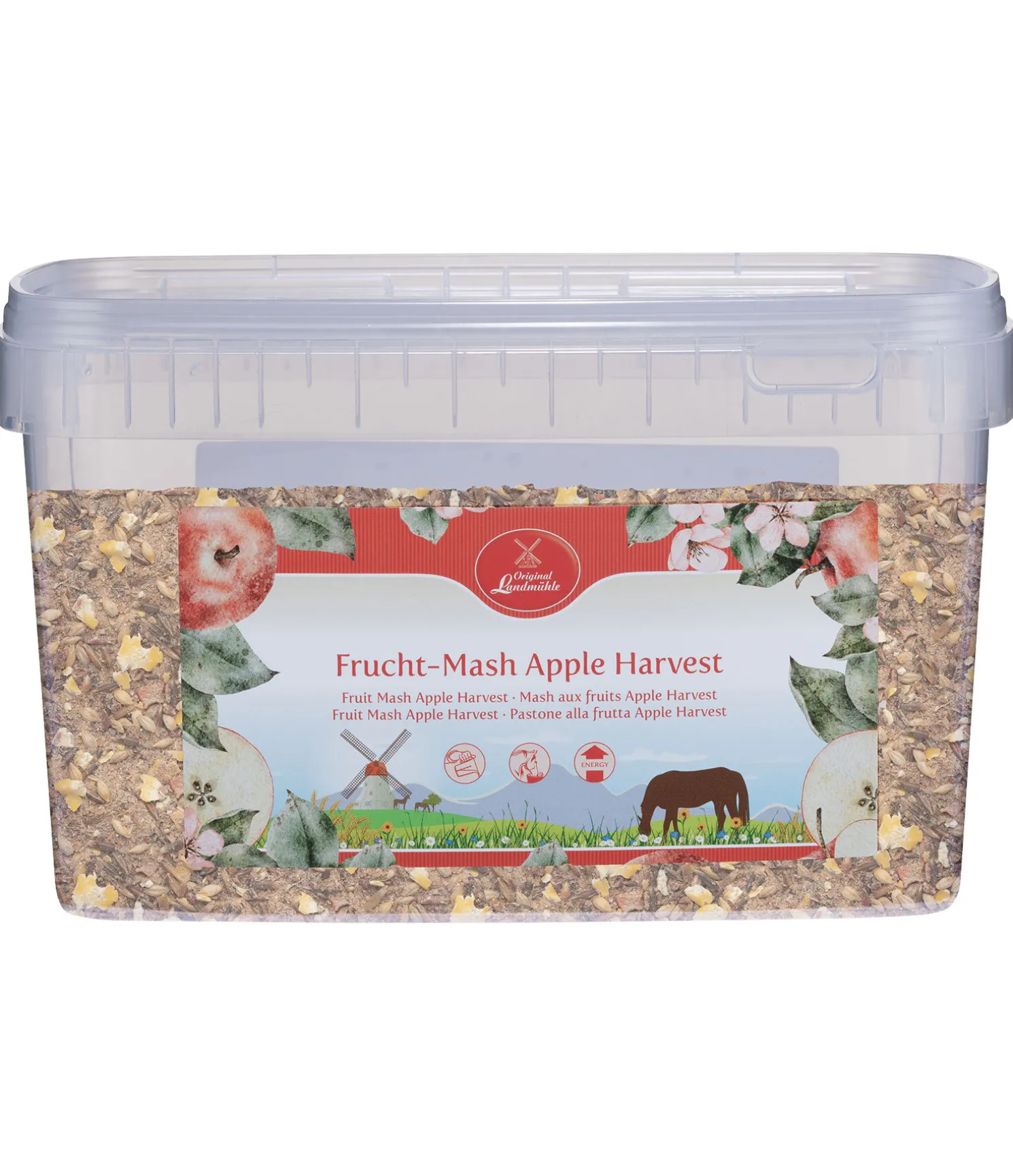 Face au succès de nos chips aux fruits secs (réf. : 490899, 490852, 490853), nous avons développé une large gamme de mashs aux fruits secs. L’avoine noire apporte énergie et saveur au mash aux fruits. Particulièrement adapté pour l’alimentation des chevaux difficiles ou ayant des problèmes d’alimentation. La marc de pomme, le tourteau de lin et la levure de bière peuvent aider à digérer et avoir un effet bénéfique sur la peau et la robe. Le mash Pomme Harvest contient un mélange varié riche en vitamines et composé de chips de pommes, de carottes, de bananes et de betteraves rouges séchées.