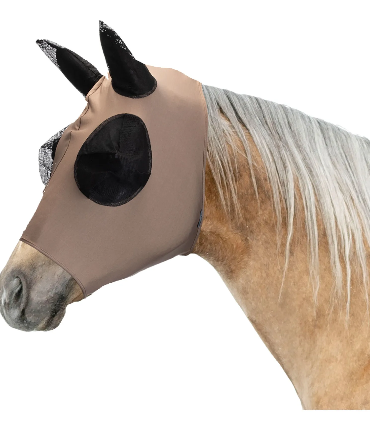 Masque anti-mouches en élasthanne lisse et extensible pour une adaptation parfaite à la tête du cheval. La matière en mailles aux yeux et aux oreilles assure une protection optimale contre les mouches. Grâce à la matière respirante, le cheval transpire moins qu’avec la plupart des autres masques. 85 % polyester, 15 % lycra.