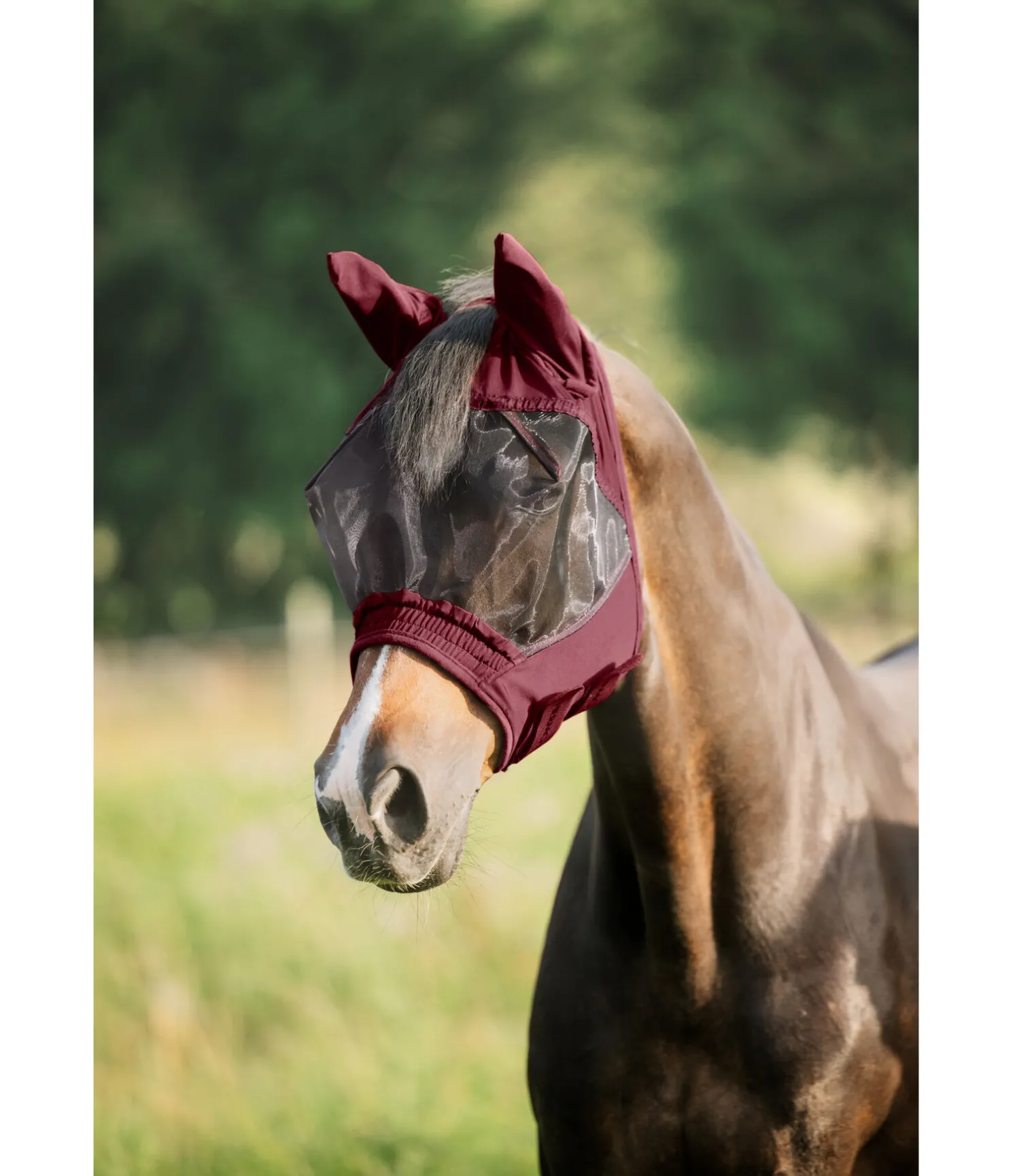 Masque anti-mouches léger. Matière respirante extensible avec élastique froncé sur le chanfrein et bordures douces en polaire pour un confort optimal. Coutures pour éloigner le filet des yeux et assurer une protection optimale à cette zone sensible. Avec passage de toupet. Fermeture par 2 pattes auto-agrippantes pour un ajustement optimal. 100 % polyester.
