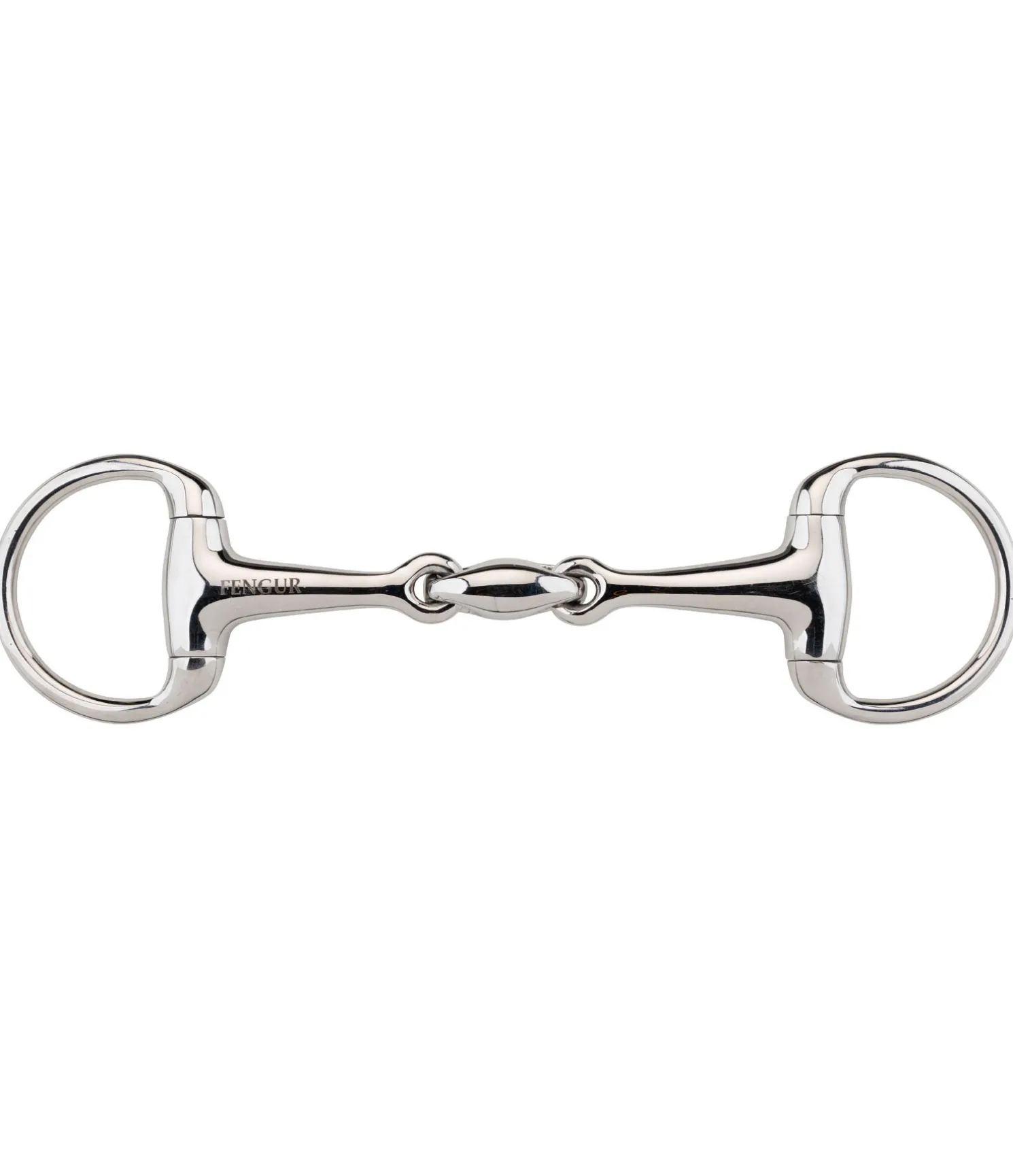 Mors à olives double brisure en acier inoxydable, bloqué par angle de brisure maximal : lorsque les rênes agissent sur les anneaux du mors, le mors devient droit. Particulièrement adapté aux chevaux qui ont tendance à se bloquer contre la main du cavalier. Épaisseur 14 mm.
