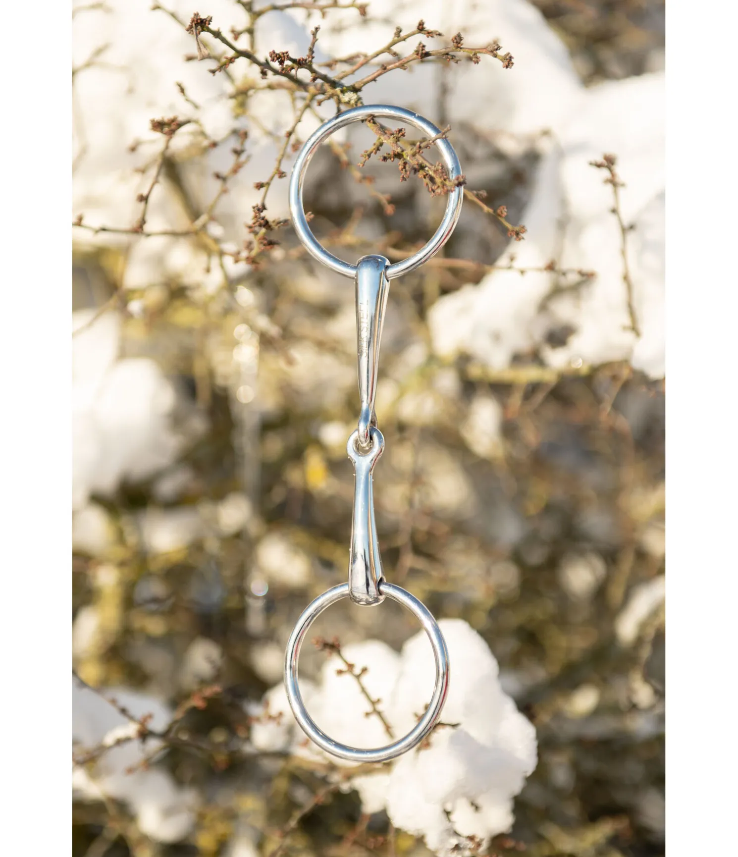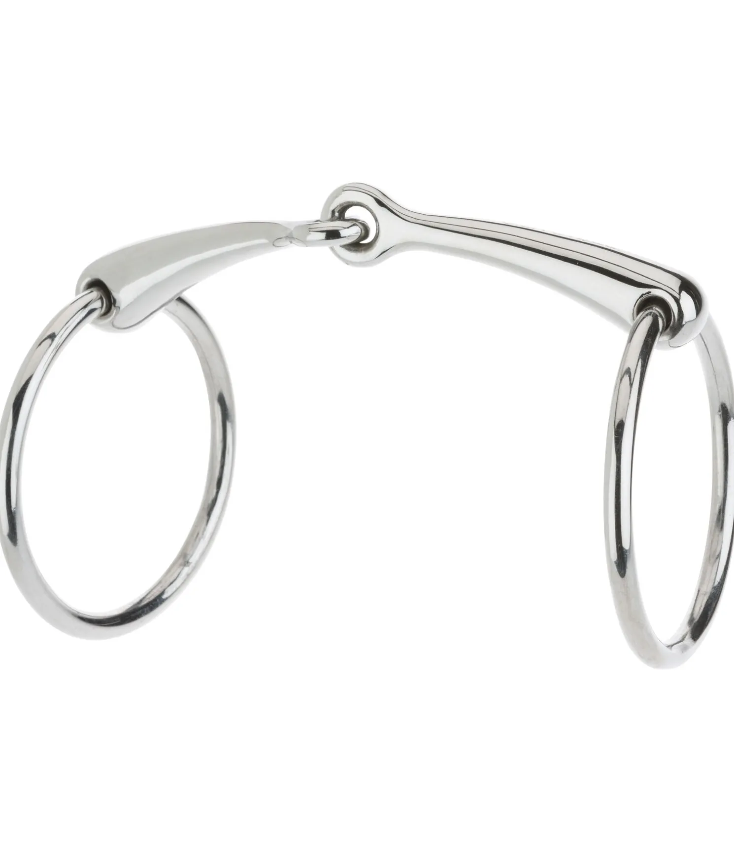 Mors de filet de bride simple brisure en acier inoxydable. Épaisseur des canons : 14 mm. Diamètre des anneaux : 70 mm.