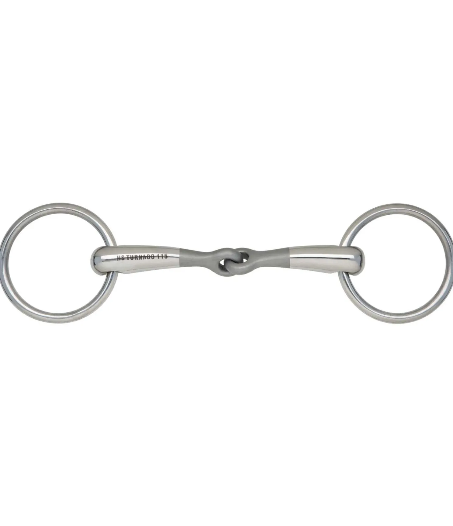 Mors à anneaux simple brisure avec canons innovants orientés vers l’avant. Articulation centrale vrillée à 45° pour une action uniforme des deux branches du mors sur la langue du cheval. Aide à compenser la dissymétrie naturelle du cheval. Aspect rugueux au centre pour mettre en valeur l’articulation. Acier inoxydable. Épaisseur des canons 14 mm. Diamètre 70 mm. En taille 11,5 : diamètre des anneaux 55 mm.
