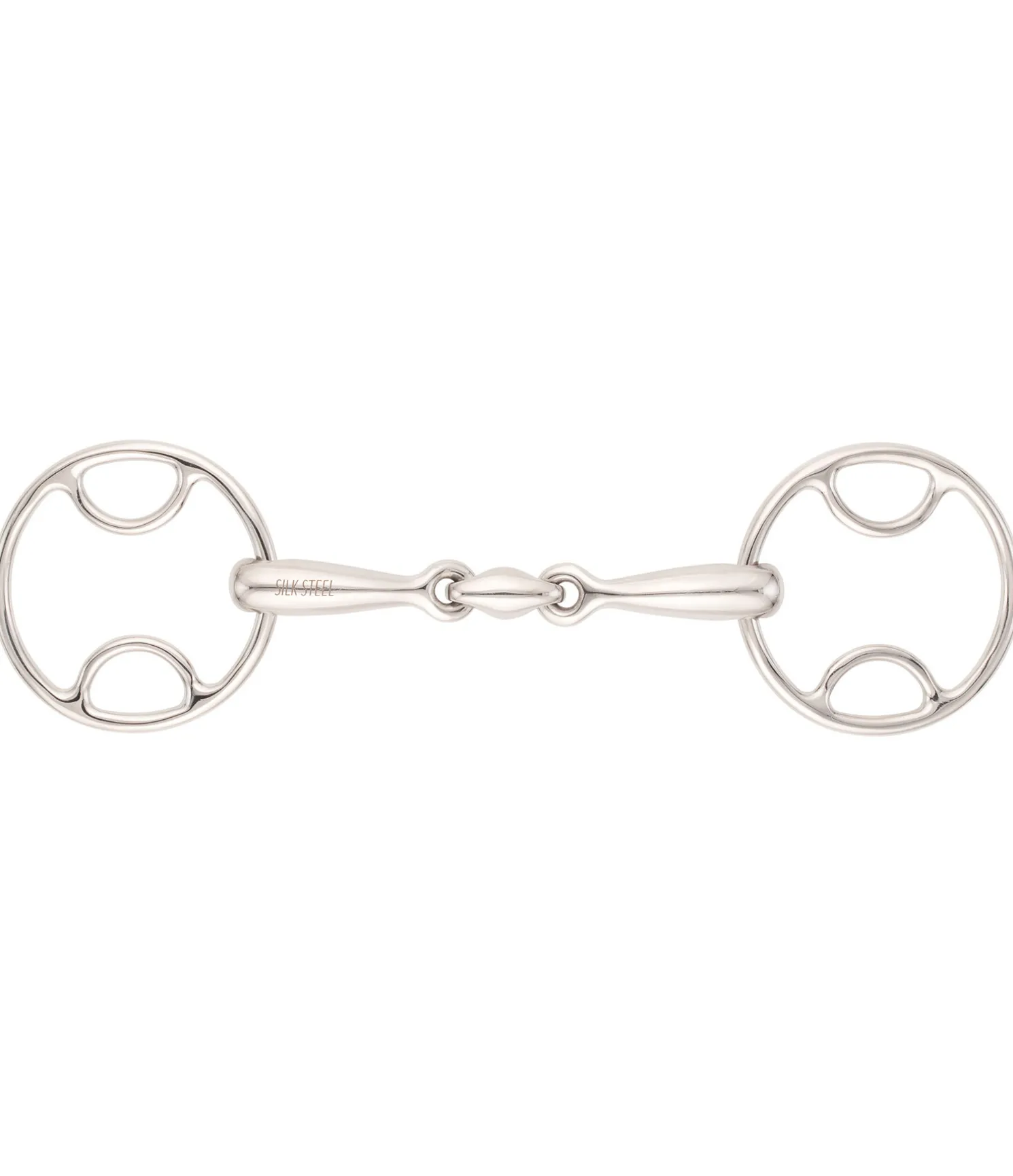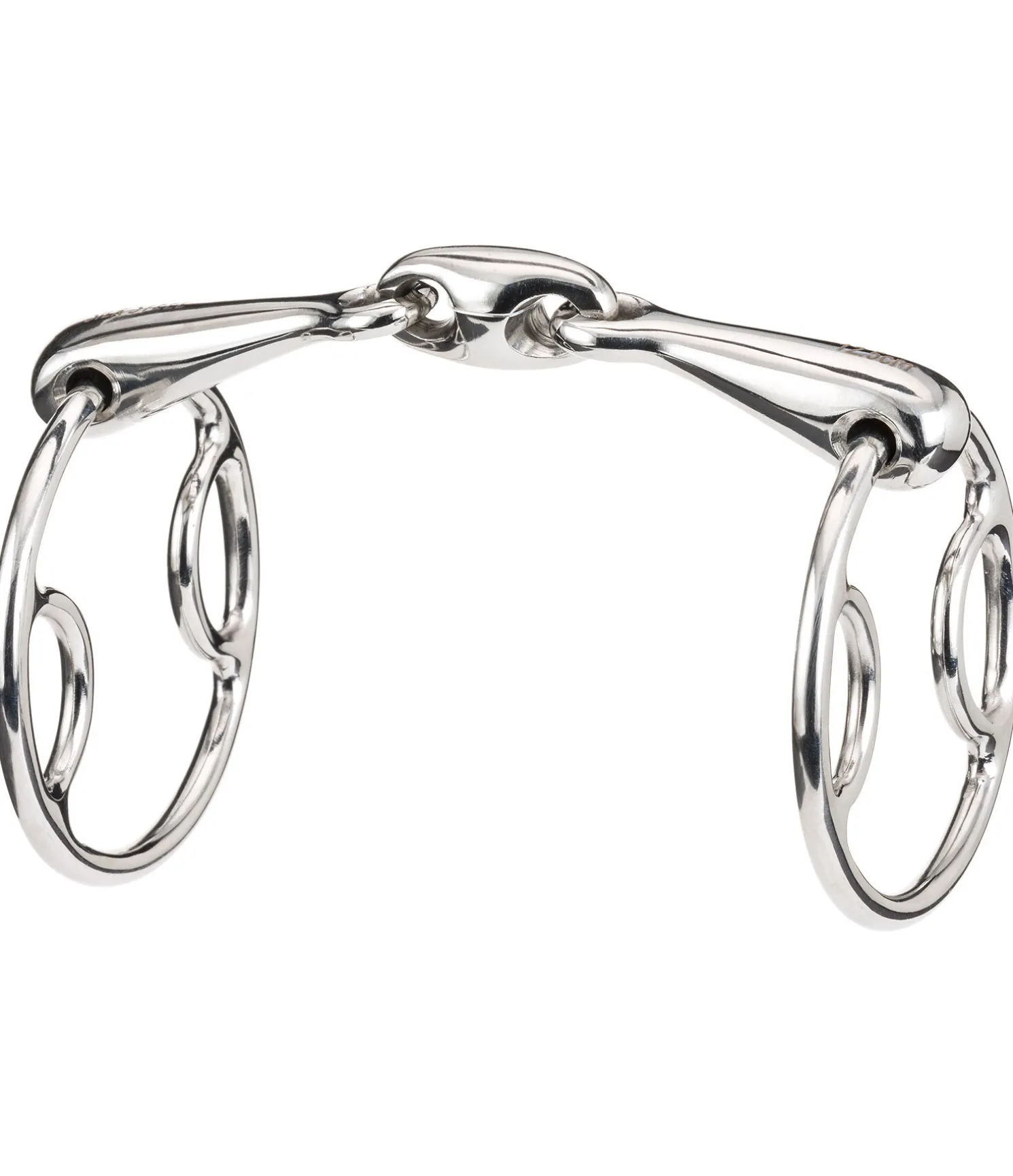 Mors universel à double brisure, de forme anatomique, avec 3 variantes de points d’attache différentes. Permet une utilisation individualisée, selon l’usage prévu et l’expérience. Acier inoxydable. 16 mm. Diamètre de l’anneau : 75 mm.