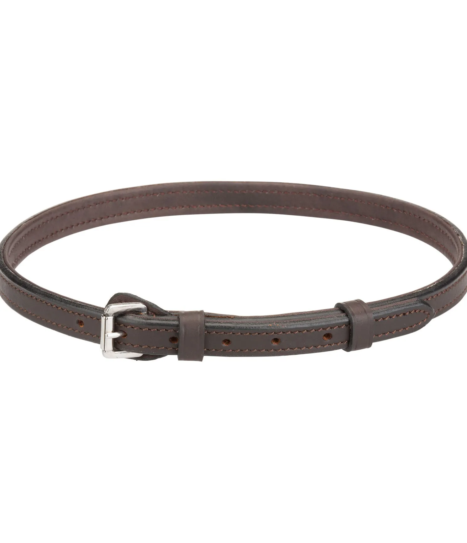 Noseband en cuir véritable avec boucle argentée. Protection supplémentaire pour la boucle. Largeur 1 cm.