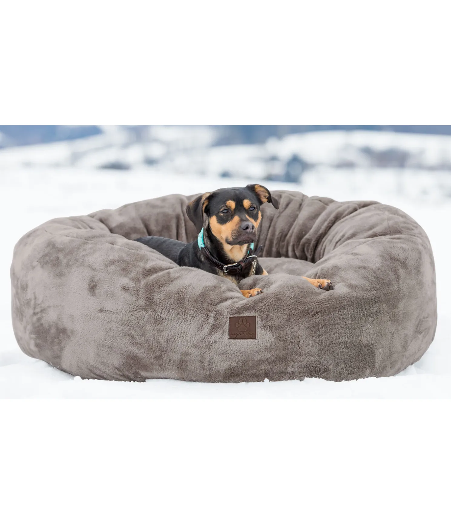 Panier confortable en polaire Teddy douce en forme de donut pour que votre chien fasse de beaux rêves. La forme arrondie avec bords hauts est parfaite pour s’y blottir, reposer sa tête et apporter une sensation de sécurité aux chiens peureux. Coussin amovible. Housse du panier et du coussin amovibles grâce à des fermetures à glissière et lavables en machine à 30°. Dessous antidérapant. 100 % polyester.