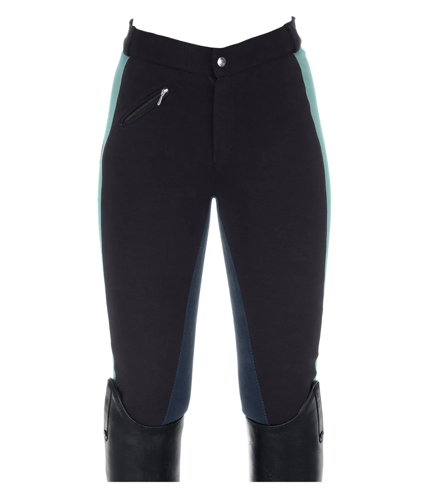 Pantalon d’équitation bicolore tendance et très confortable. Fond intégral synthétique en stretch jusqu’au mollet. Offre une assise confortable et un bon maintien en selle. Coupe ajustée. Matière extensible et respirante. Séchage rapide. Facile d’entretien. Ceinture élastiquée avec passants. Aucune gêne avec un gilet de sécurité par-dessus. Bas de jambe extensible sans patte auto-agrippante. Broderie Equilibre le long de la cuisse et petite poche zippée. Matière 95 % coton,5 % élasthanne. Lavable en machine à 30°C.