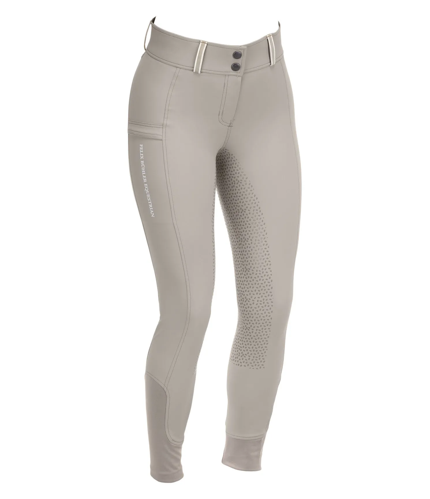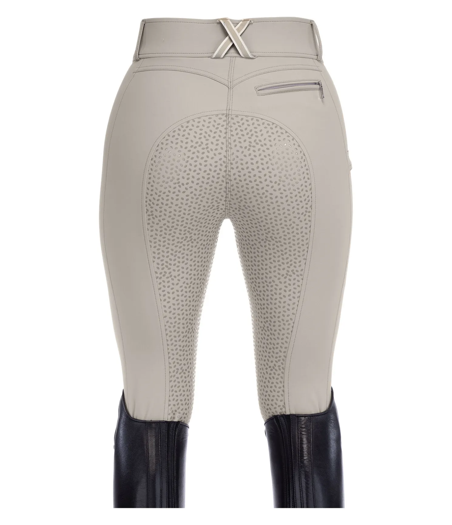 Pantalon d’équitation technique avec fond intégral grip en silicone. Matière déperlante, respirante à séchage rapide. Le tissu stretch offre un super confort et une assise parfaite. 1 poche arrière zippée, 1 poche pour téléphone portable sur la jambe. Ceinture élastiquée avec passants rayés de couleur contrastante. Aucune couture au niveau des genoux. Bas de jambe extensible en stretch. 89 % nylon,11 % élasthanne.