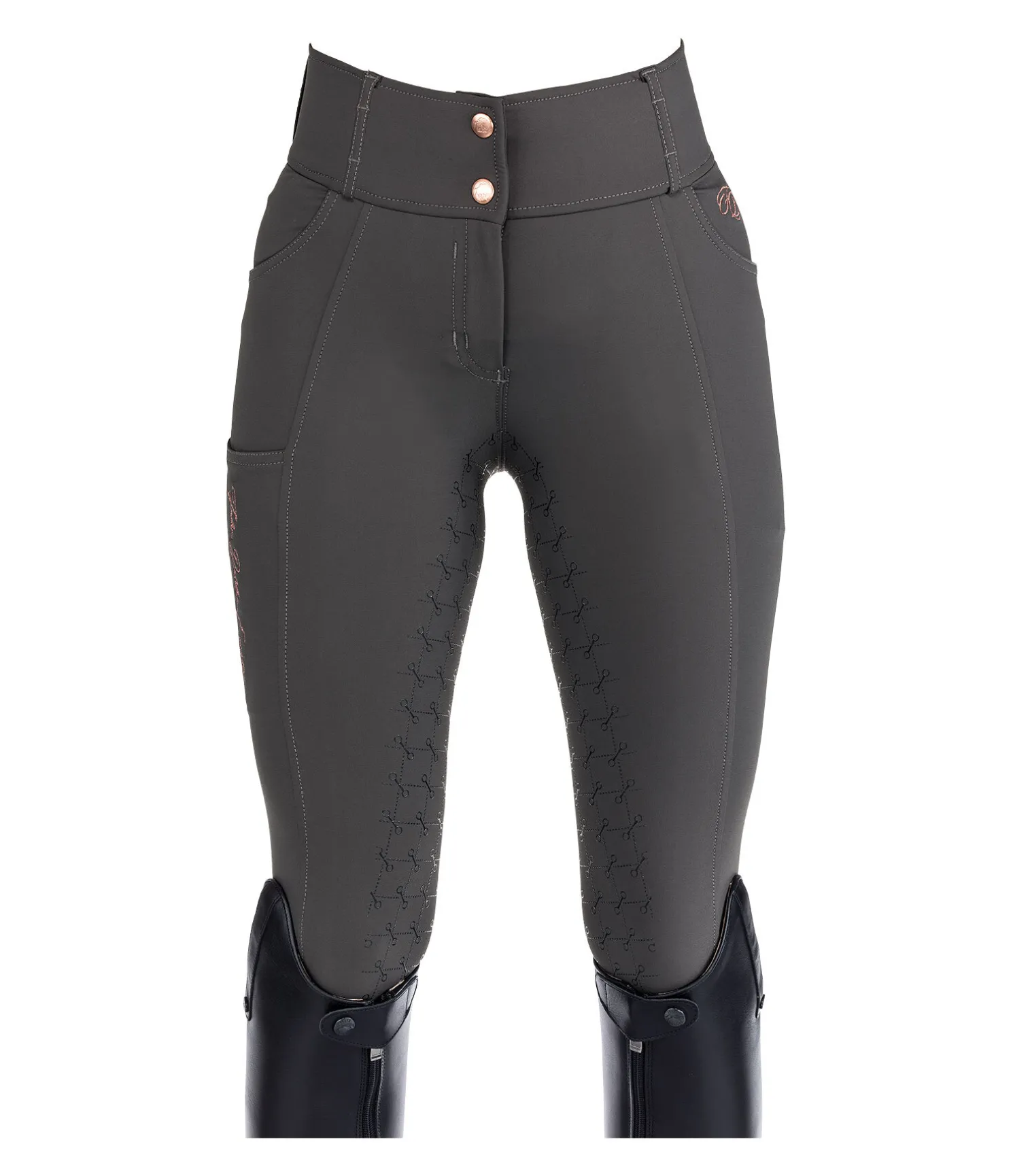 Pantalon d’équitation sportswear et extensible, à fond intégral grip en silicone avec motifs de mors. Matière déperlante, respirante et à séchage rapide. Broderie Felix Bühler sur la jambe. Poche arrière zippée et poche pour téléphone portable sur la cuisse. Deux poches avant. Ceinture à passants extra large élastiquée avec 2 boutons. Aucune couture aux genoux. Bas de jambe extensible en stretch. 89 % nylon, 11 % élasthanne.