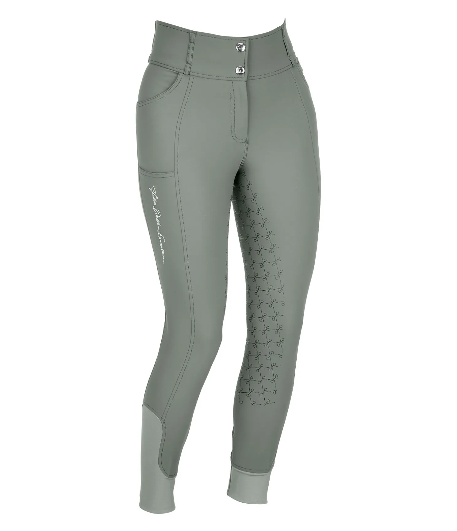 Pantalon d’équitation sportswear et extensible, à fond intégral grip en silicone avec motifs de mors. Matière déperlante, respirante et à séchage rapide. Broderie Felix Bühler sur la jambe. Poche arrière zippée et poche pour téléphone portable sur la cuisse. Deux poches avant. Ceinture à passants extra large élastiquée avec 2 boutons. Aucune couture aux genoux. Bas de jambe extensible en stretch. 89 % nylon, 11 % élasthanne.