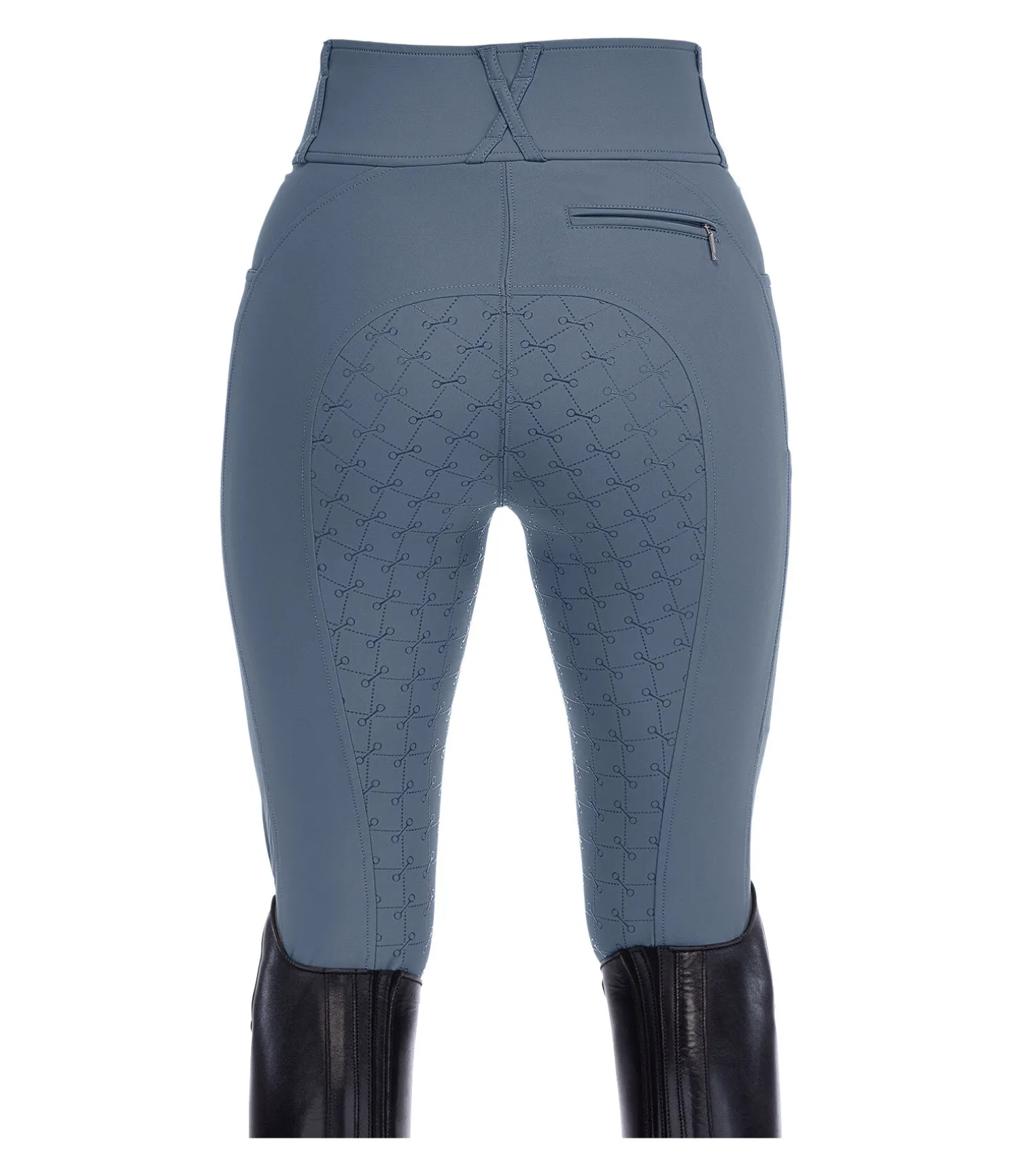 Pantalon d’équitation sportswear et extensible, à fond intégral grip en silicone avec motifs de mors. Matière déperlante, respirante et à séchage rapide. Broderie Felix Bühler sur la jambe. Poche arrière zippée et poche pour téléphone portable sur la cuisse. Deux poches avant. Ceinture à passants extra large élastiquée avec 2 boutons. Aucune couture aux genoux. Bas de jambe extensible en stretch. 89 % nylon, 11 % élasthanne.