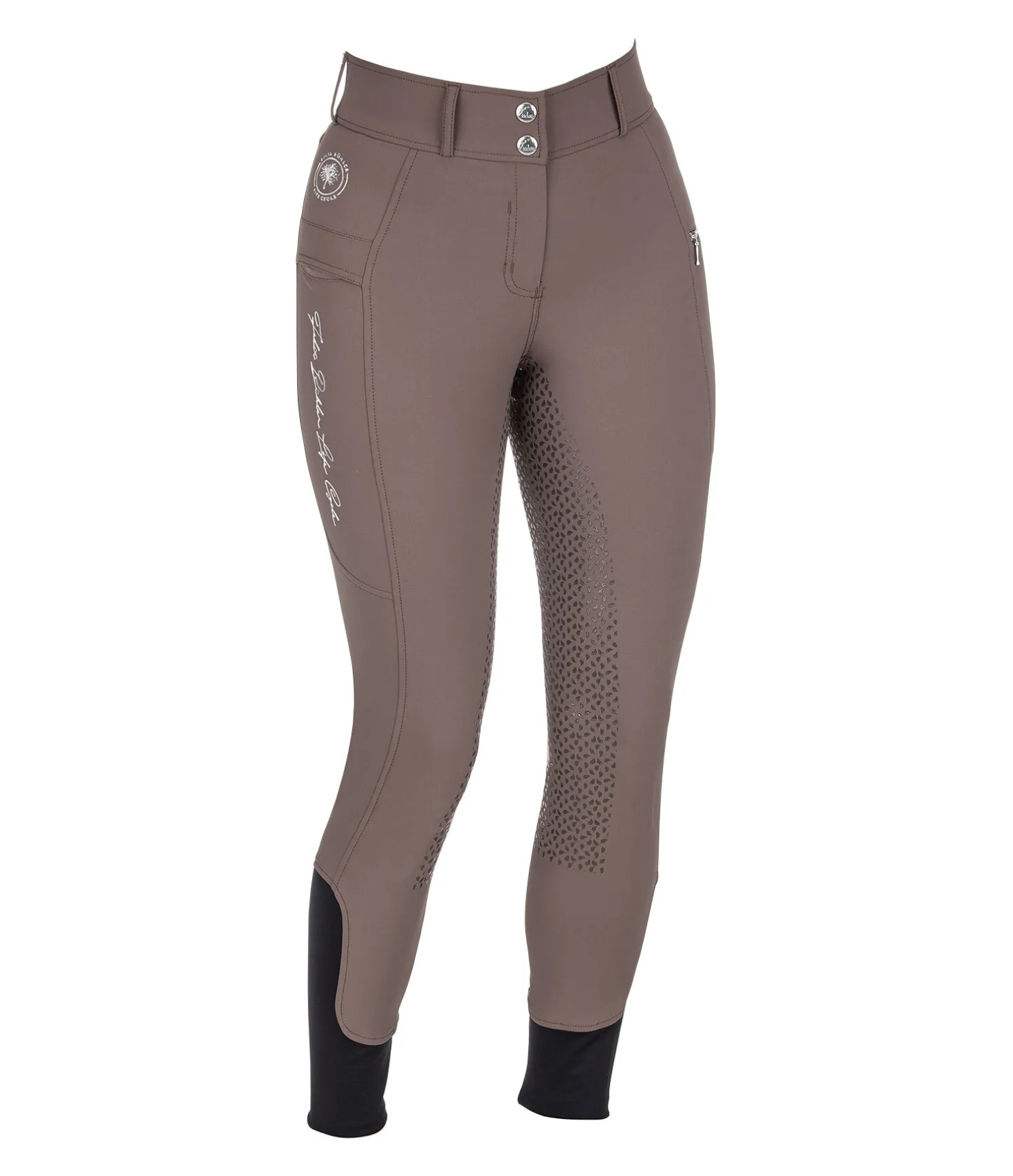 Durable et confortable ! Pantalon d’équitation à fond intégral grip en silicone extrêmement agréable à porter. Conçu principalement en stretch recyclé de grande qualité. Imprimés Felix Bühler Life Cycle. Matière respirante. Séchage rapide. 2 poches arrière et 2 poches latérales pour téléphone portable, dont une avec fermeture à glissière. Ceinture extra large avec 2 boutons. Aucune couture au niveau des genoux. Bas de jambe extensible en stretch. 89 % polyester, 11 % élasthanne.