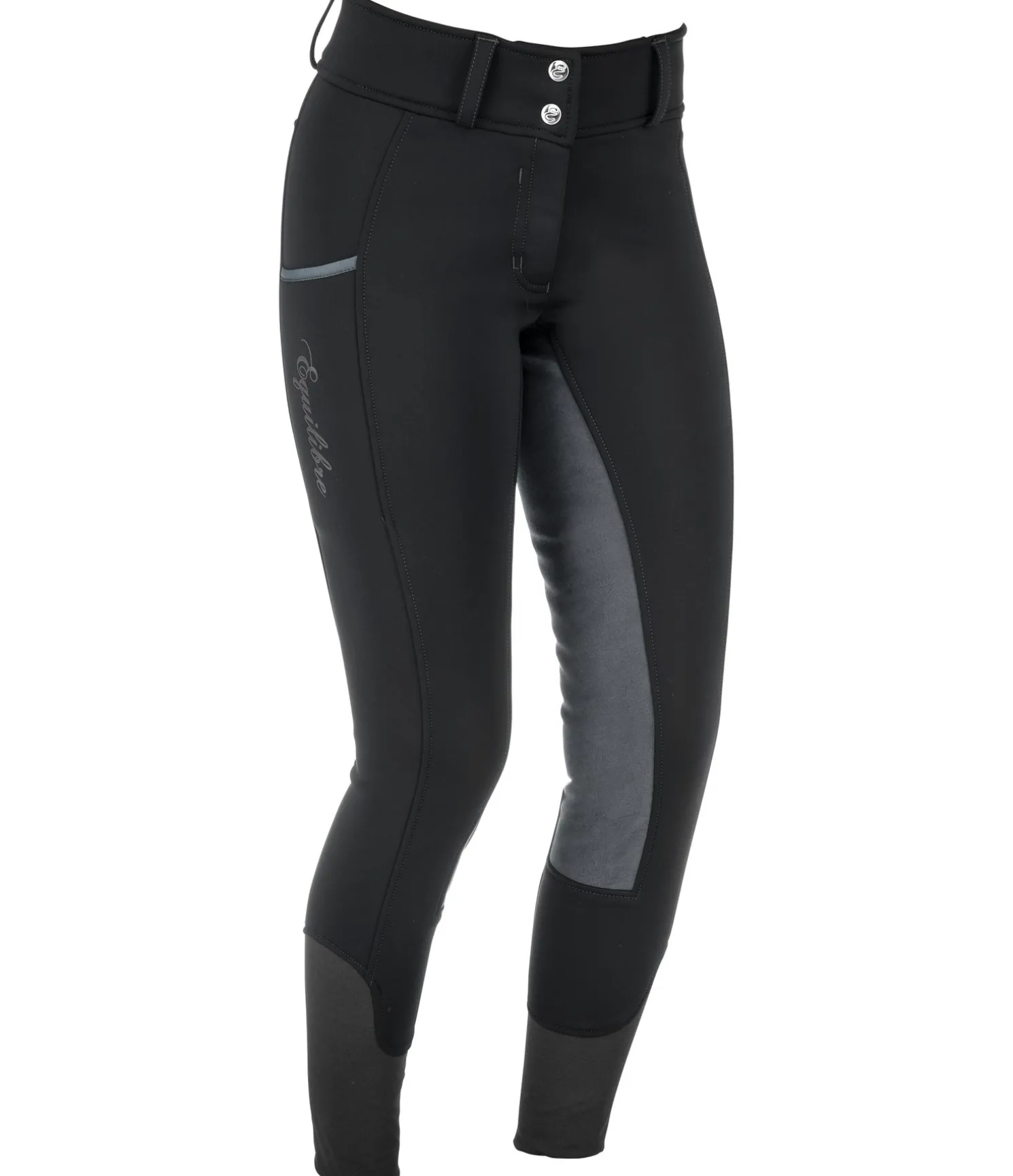 Pantalon d’équitation d’hiver coupe-vent et chaud. Fond intégral extensible en synthétique. Intérieur molletonné et doux. Bas de jambe extensible sans patte auto-agrippante. Large ceinture extensible. Une grande poche pour téléphone portable sur la cuisse et une poche arrière zippée. Matière extérieure 88 % nylon, 12 % élasthanne, doublure 100 % polyester.