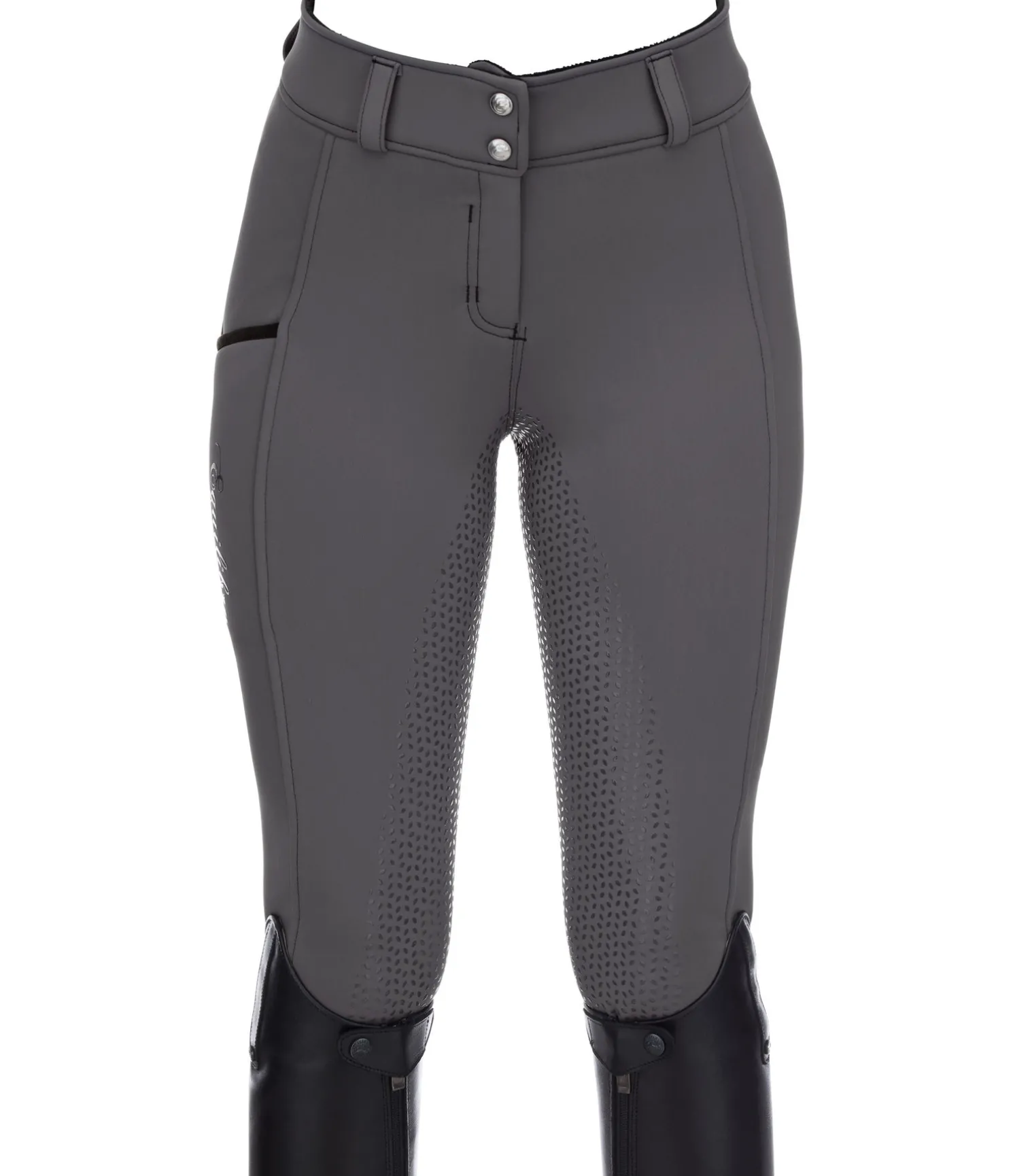Legging d’équitation confortable avec fond intégral grip en silicone. Matière extensible lisse à l’extérieur et confortable à l’intérieur. Ceinture extra large élastiquée. Une poche zippée pour téléphone portable sur la cuisse. Bas de jambe extensible sans patte auto-agrippante. 86 % polyester, 14 % élasthanne.