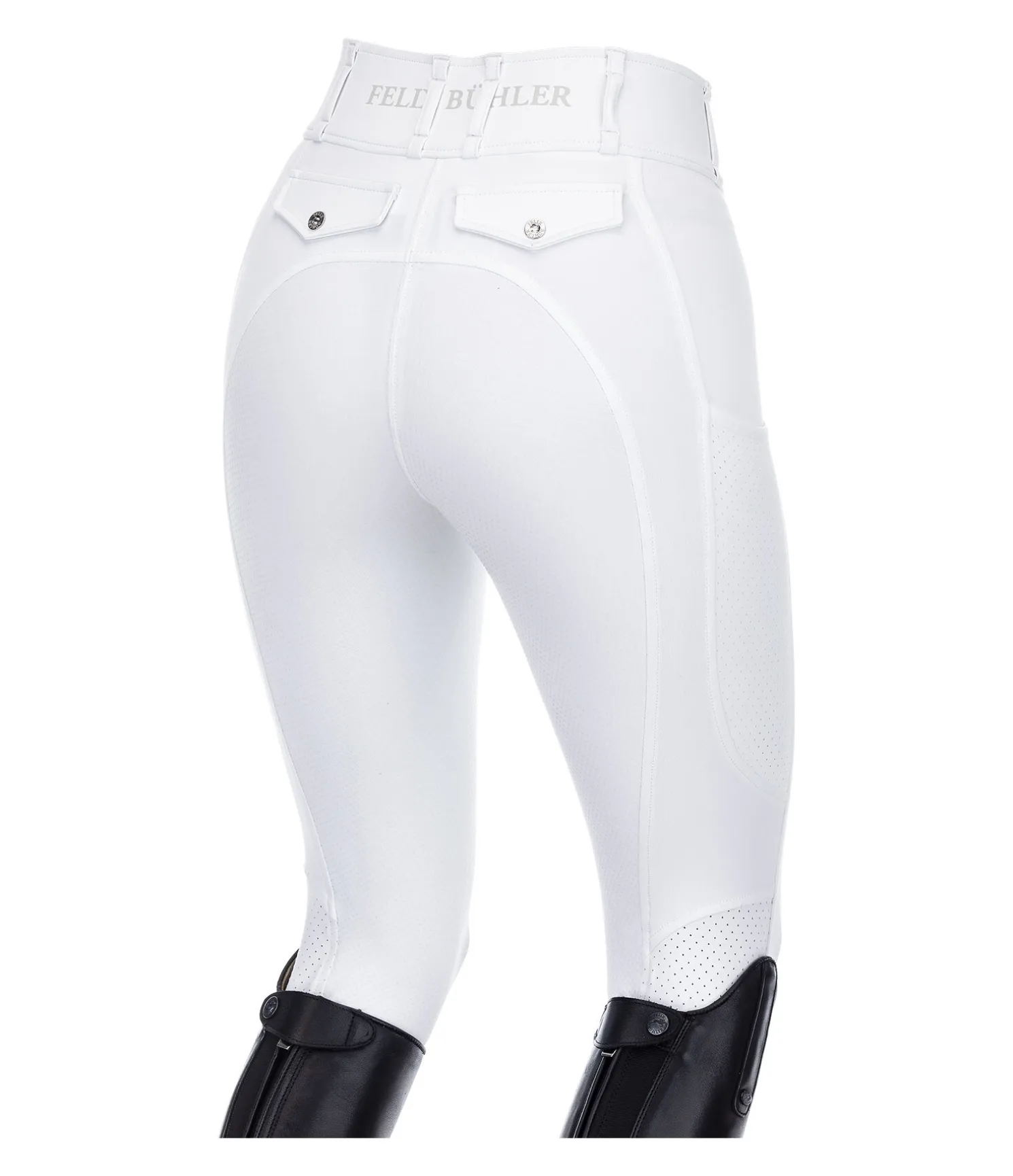 Pantalon d’équitation super confortable et léger à fond intégral grip en silicone. Stretch extensible dans 4 directions pour un effet sculptant garanti. Matière respirante à séchage rapide. Tissu très aéré grâce à la découpe laser sur les jambes. Large ceinture avec passants et deux boutons. Une poche pour téléphone portable sur chaque jambe. Deux fausses poches arrière. Aucune couture sur les genoux. Badges Felix Bühler. 78 % polyester, 22 % élasthanne.
