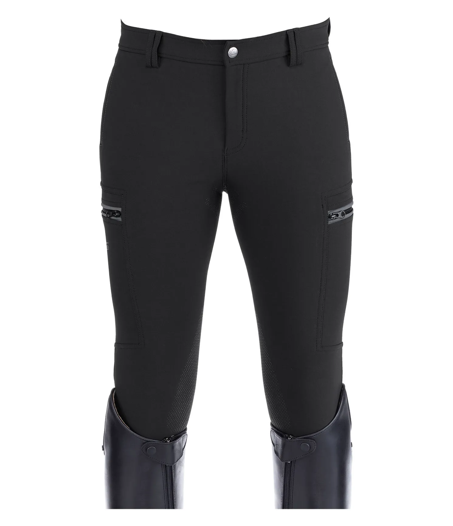 Pantalon d’équitation avec fond intégral grip siliconé. Matière extensible, déperlante, respirante à séchage rapide. 2 poches avant et 2 arrière. 1 poche plaquée et zippée pour téléphone portable sur chaque cuisse. Bas de jambe extensible. 93 % nylon, 7 % élasthanne.