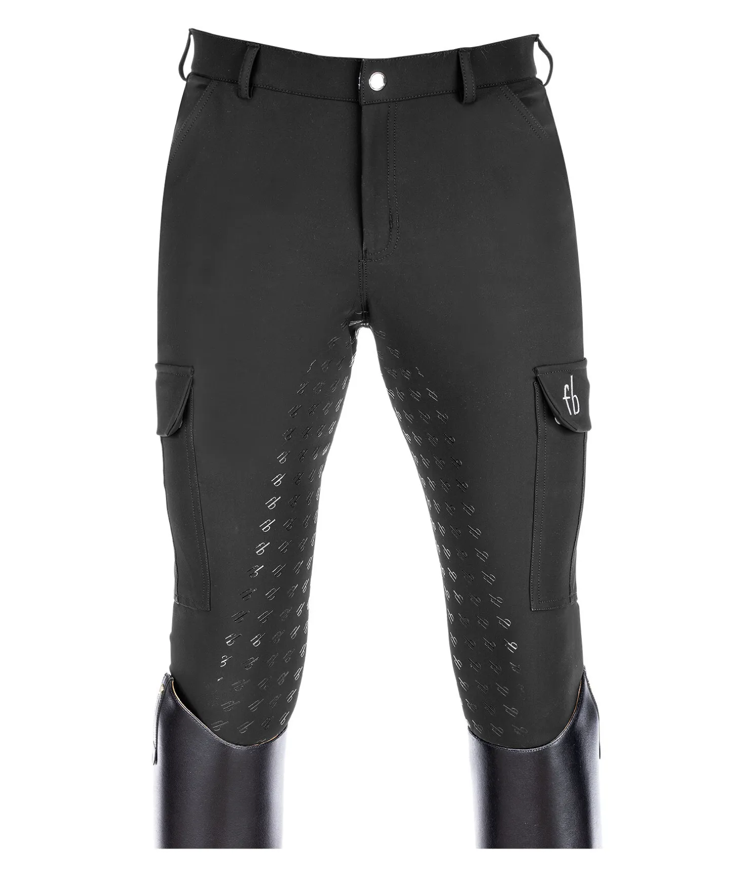 Pantalon d’équitation technique avec fond intégral grip en silicone Felix Bühler. Matière déperlante et respirante. Deux poches à l’avant et une poche cargo avec boutons-pression sur chaque jambe. Ceinture élastiquée avec passants et bande en silicone avec inscription Felix Bühler à l’intérieur pour un maintien optimal. Broderie Felix Bühler sur la poche gauche. Bas de jambe extensible sans patte auto-agrippante. 77 % polyamide, 23 % élasthanne.
