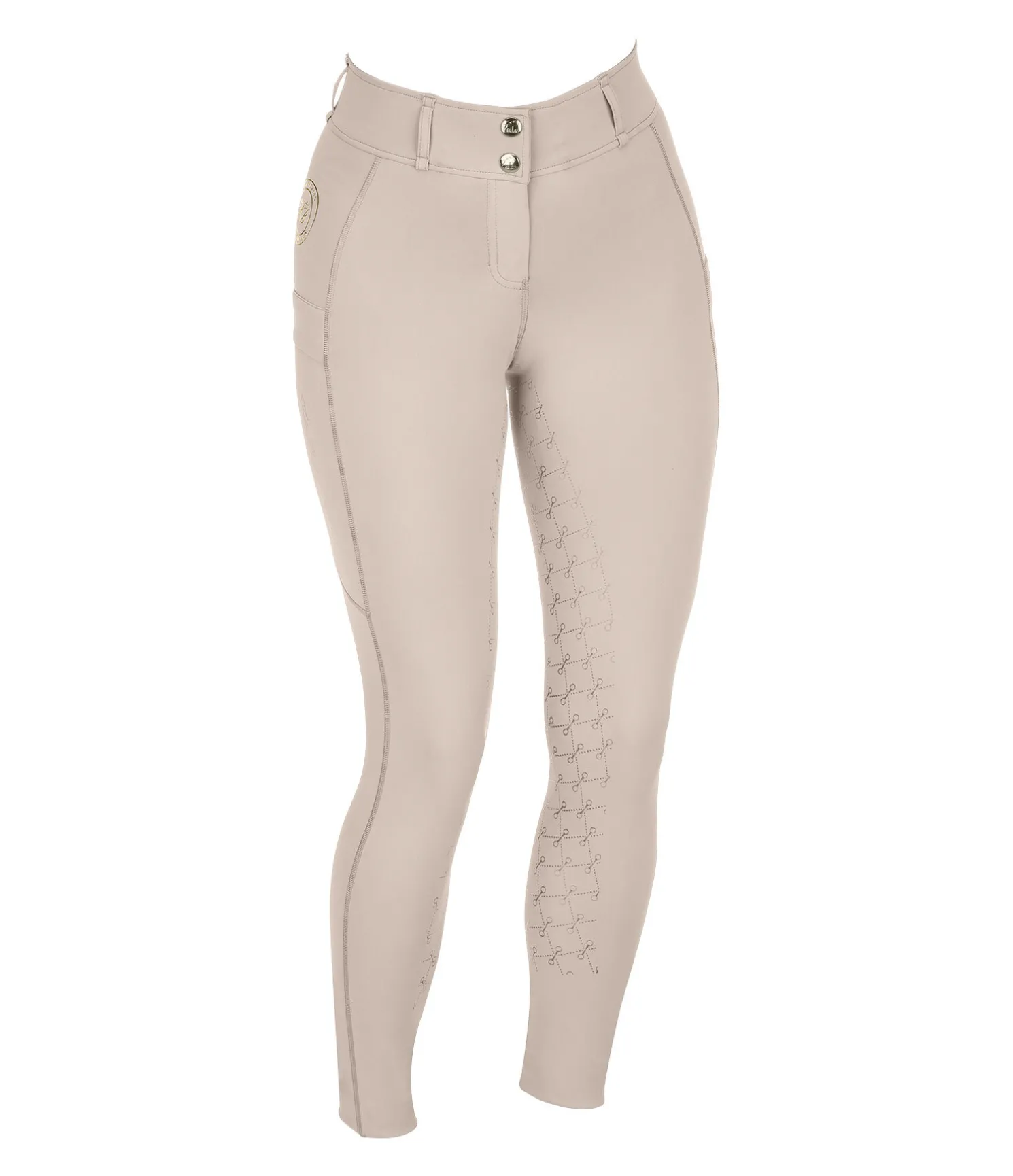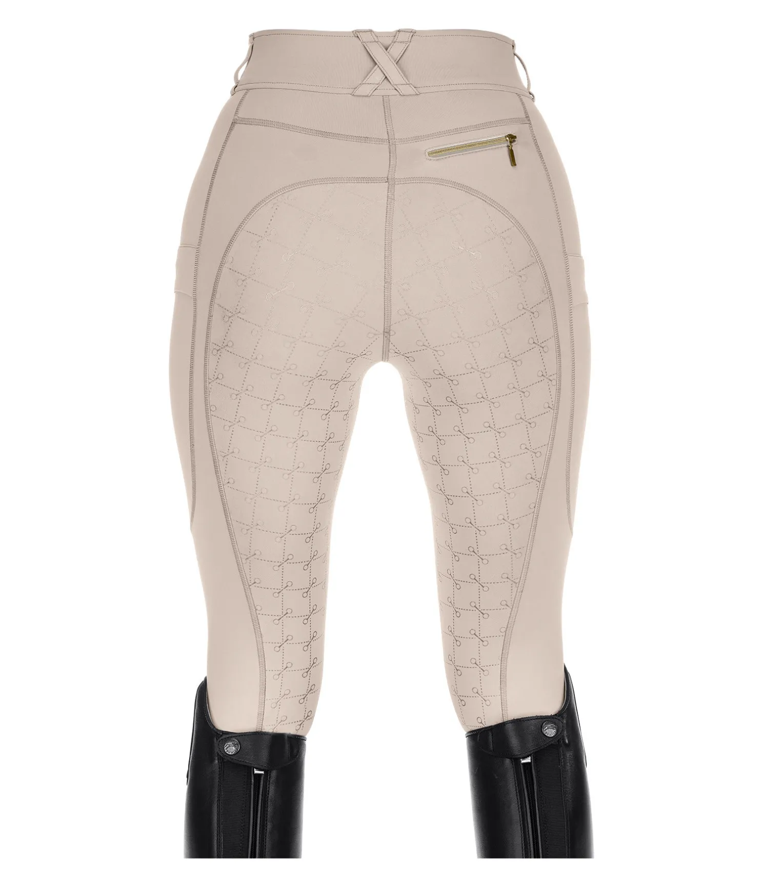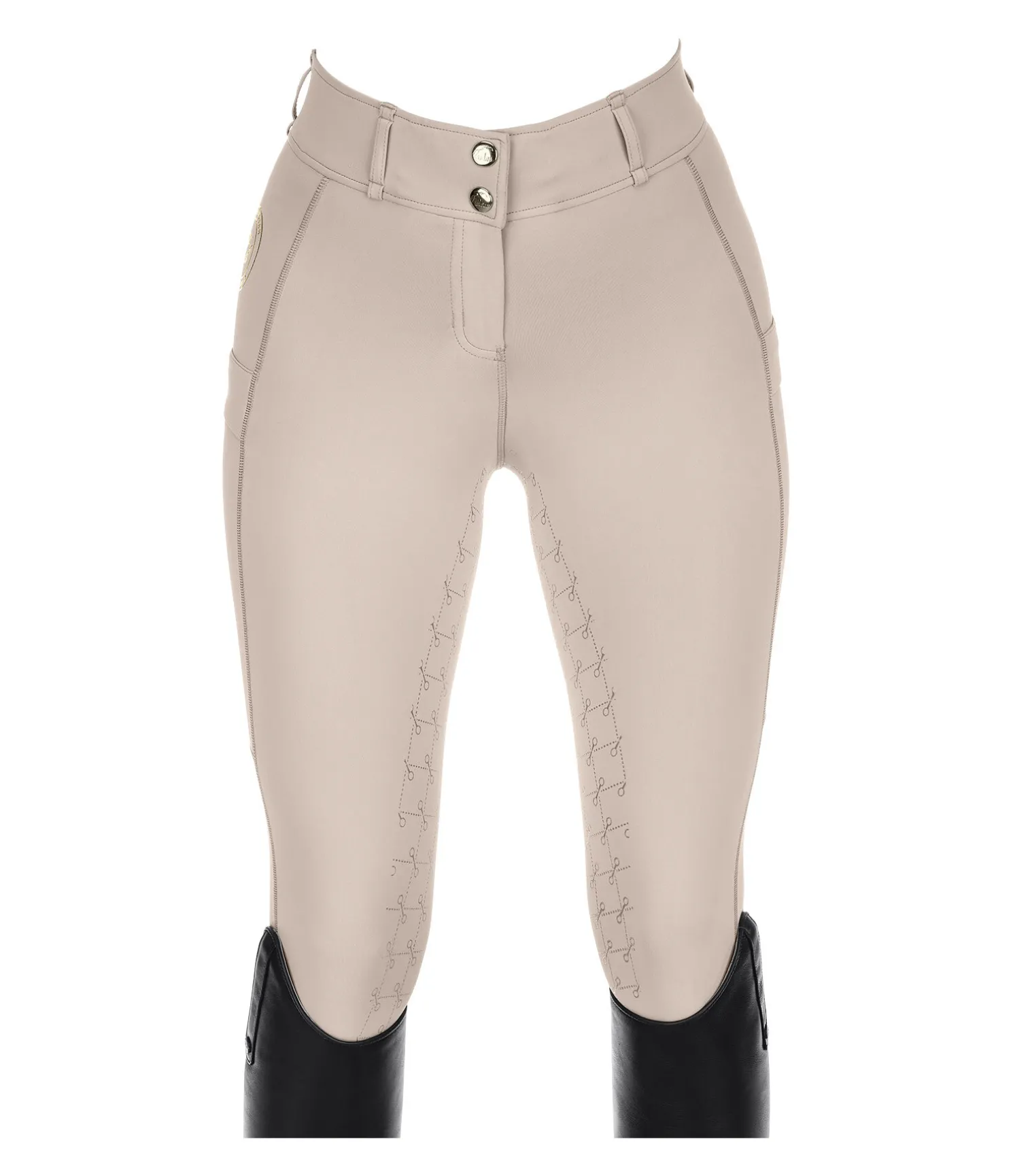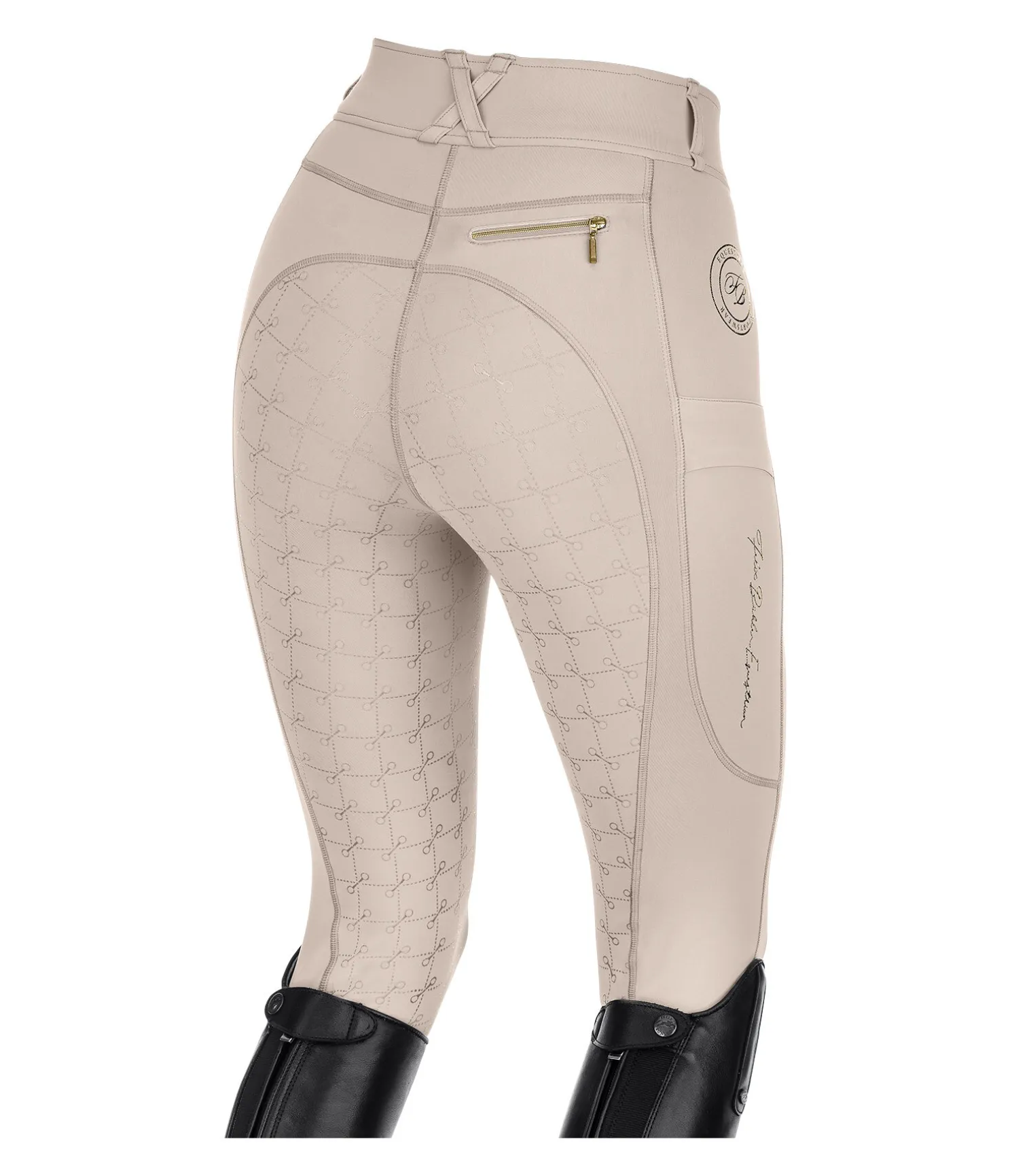 Pantalon d’équitation à fond intégral avec motif de mors en silicone. Stretch Performance extensible dans 4 directions pour un effet sculptant garanti. Matière legging respirante à séchage rapide. Ceinture extra large avec passants. Une poche zippée arrière. Une poche pour téléphone portable sur chaque jambe. Aucune couture aux genoux. Bas de jambe extensible. Badge et signature Felix Bülher scintillants. 78 % polyester, 22 % élasthanne.