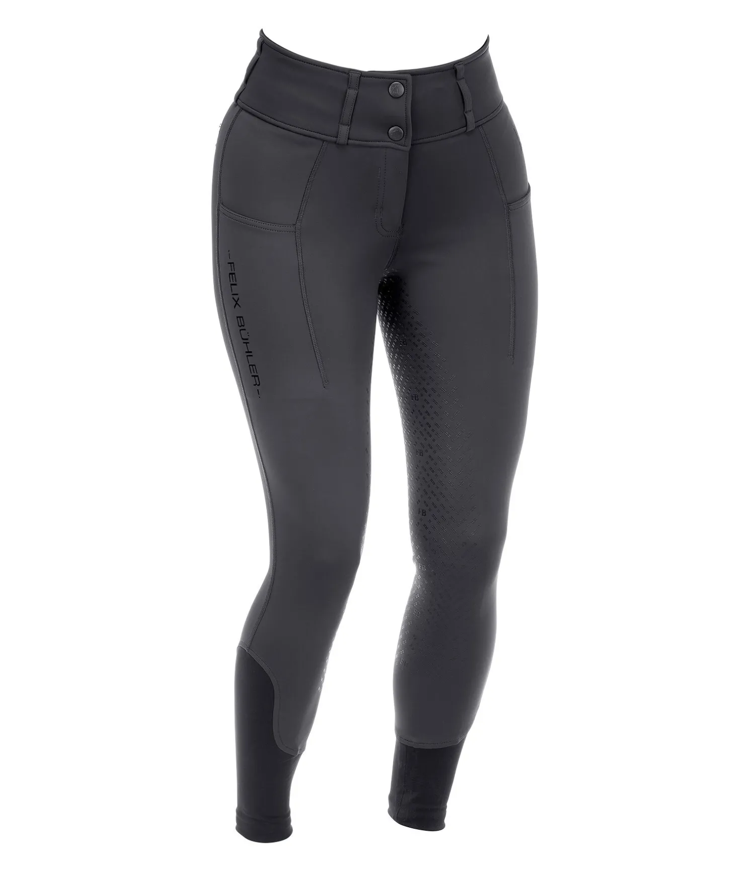 Pantalon d’équitation chaud au look sportif en matière stretch douce et extensible dans 4 directions avec fond intégral en silicone. Respirant et à séchage rapide. 2 poches latérales pour téléphone portable, 1 poche arrière zippée. Imprimés Felix Bühler en silicone et broderie, ceinture large avec passants, sans coutures aux genoux, bas de jambe extensible. 78 % polyamide, 22 % élasthanne.
