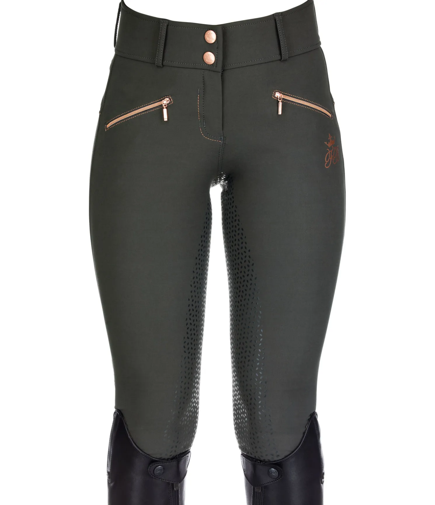 Élégant pantalon d’équitation. Fond intégral Grip siliconé pour une tenue parfaite en selle. Taille haute. Bas de jambe extensible sans patte auto-agrippante. Aucune couture au niveau des genoux. Matière extensible respirante, déperlante, résistante et facile d’entretien. Deux poches avant zippées. Surpiqûres de couleur contrastante. Ceinture élastiquée. Jolis imprimés Felix Bühler. 93 % nylon, 7 % élasthanne.