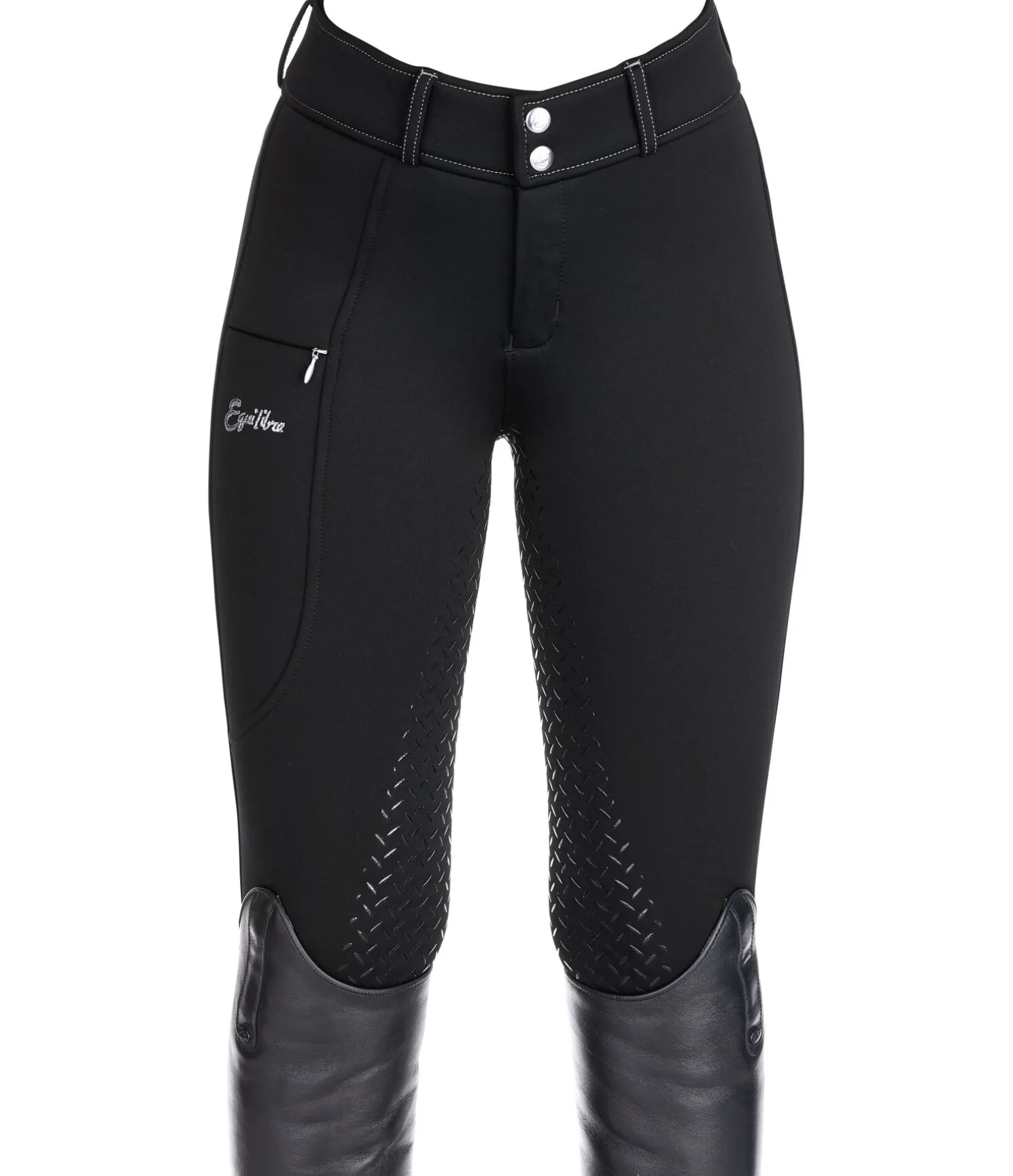 Pantalon d’équitation d’hiver chaud avec ceinture extra large et fond intégral grip en silicone. Coupe optimale et confortable grâce à la matière stretch douce et extensible dans 4 directions. Intérieur molletonné. Poche latérale pour téléphone portable. 60 % polyester, 33 % polyamide, 7 % élasthanne.