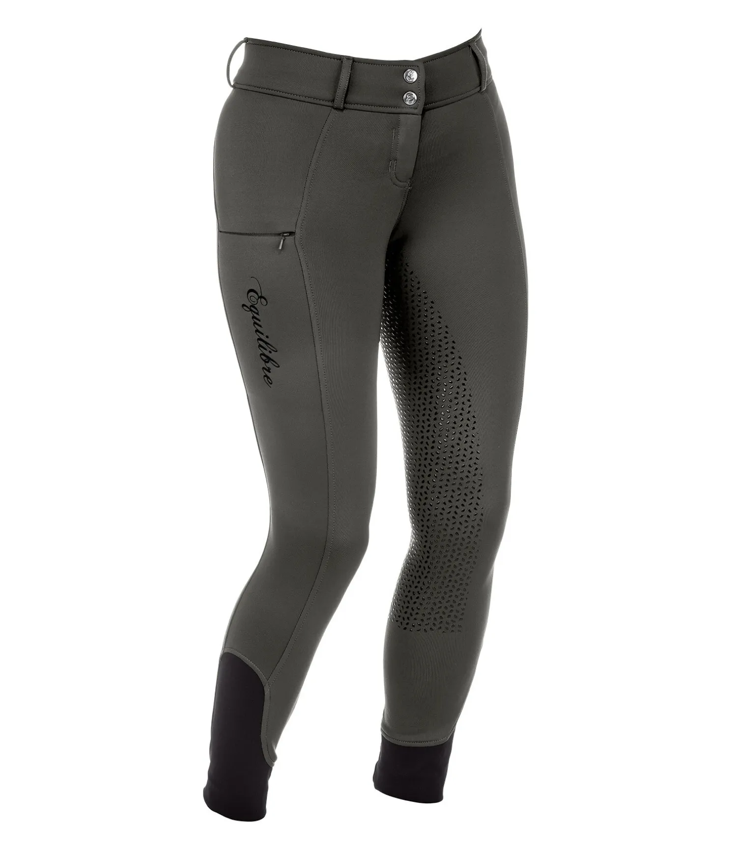 Prix imbattable ! Pantalon d’équitation thermique à fond intégral grip en silicone. Extérieur lisse et intérieur doux et moelleux. Matière stretch respirante extensible dans 4 directions. Séchage rapide. Ceinture large. Poche zippée pour téléphone portable sur la cuisse. Aucune couture au niveau des genoux. Bas de jambe extensible. 86 % polyester, 14 % élasthanne.
