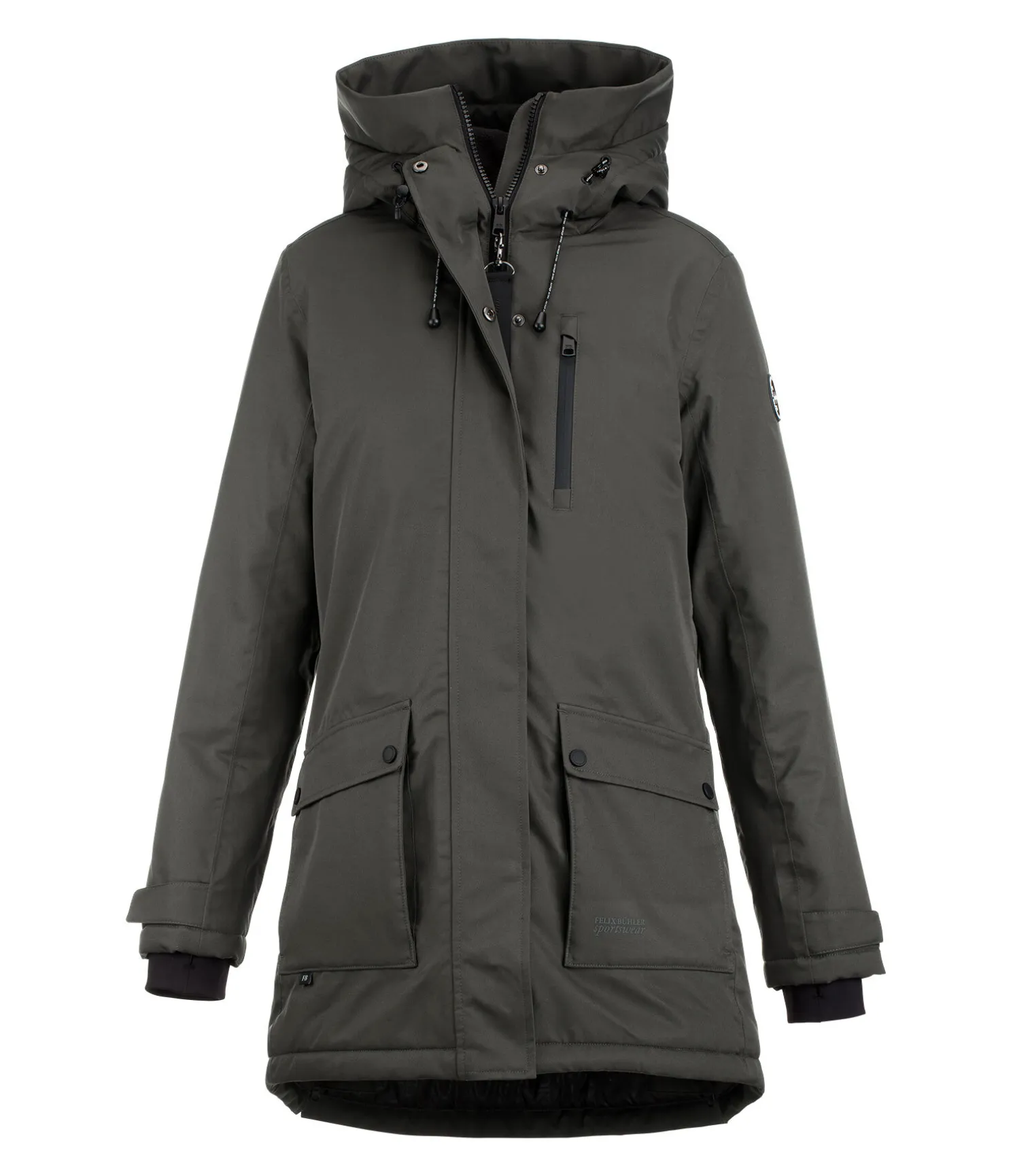 Parka d’équitation technique avec capuche haute ajustable. Bouton-pression pour fixer la capuche dans le dos. Matière imperméable (10.000 mm), coupe-vent et respirante. Doublure matelassée douce imitation duvet. Fermeture à glissière double sens dissimulée. 2 poches avant à rabat avec boutons pression, 1 poche de poitrine avec zip étanche, 1 poche intérieure zippée. Taille et bas des manches réglables. Bas des manches élastiqué et coupe-vent. 2 fentes cavalières zippées à l’arrière. 100 % polyester.