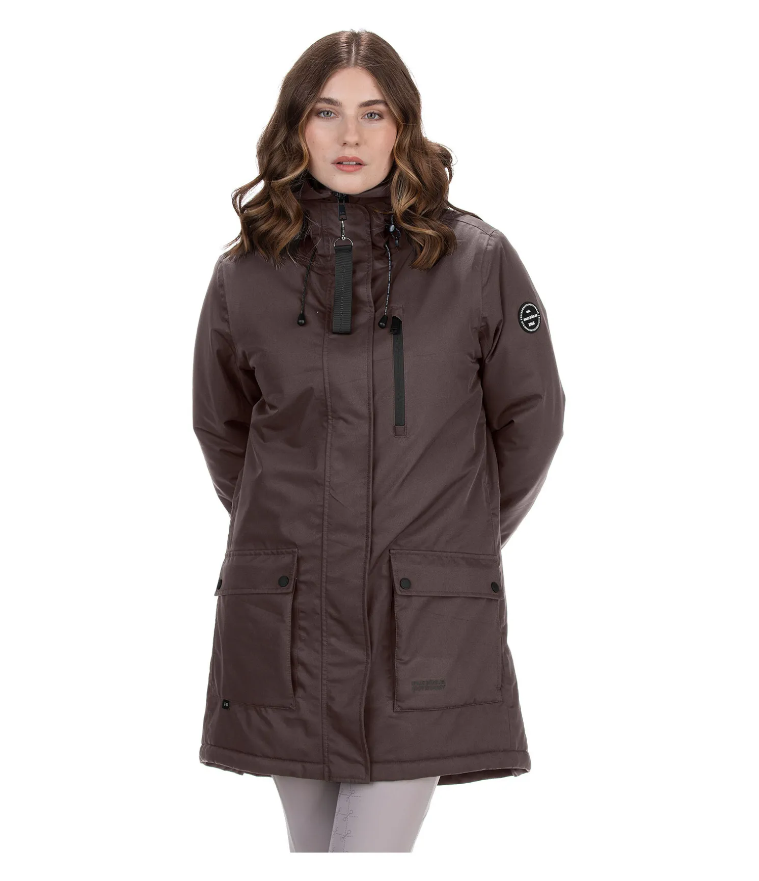 Parka d’équitation technique avec capuche haute ajustable. Bouton-pression pour fixer la capuche dans le dos. Matière imperméable (10.000 mm), coupe-vent et respirante. Doublure matelassée douce imitation duvet. Fermeture à glissière double sens dissimulée. 2 poches avant à rabat avec boutons pression, 1 poche de poitrine avec zip étanche, 1 poche intérieure zippée. Taille et bas des manches réglables. Bas des manches élastiqué et coupe-vent. 2 fentes cavalières zippées à l’arrière. 100 % polyester.