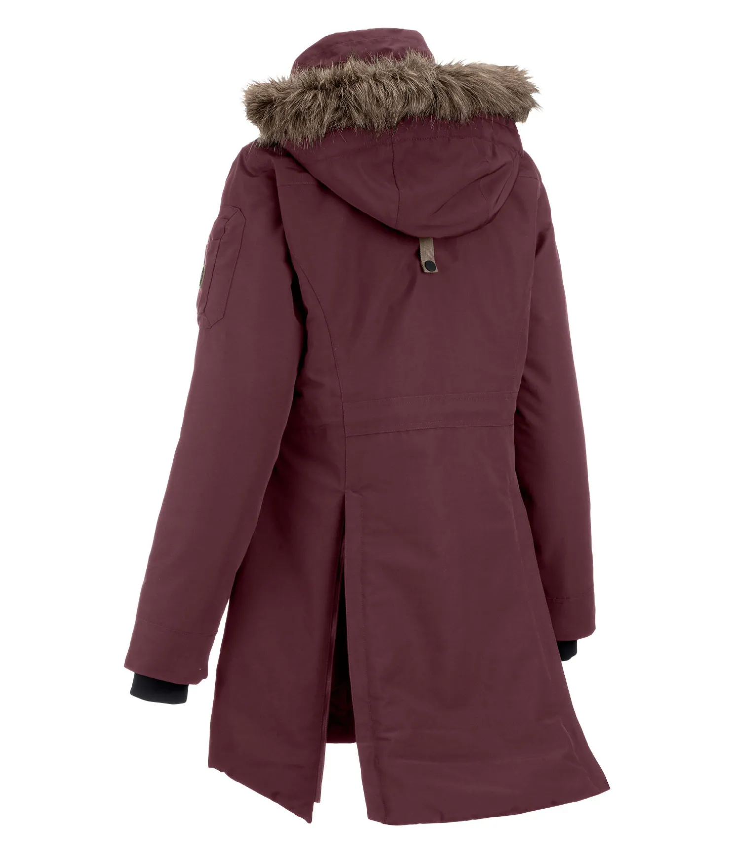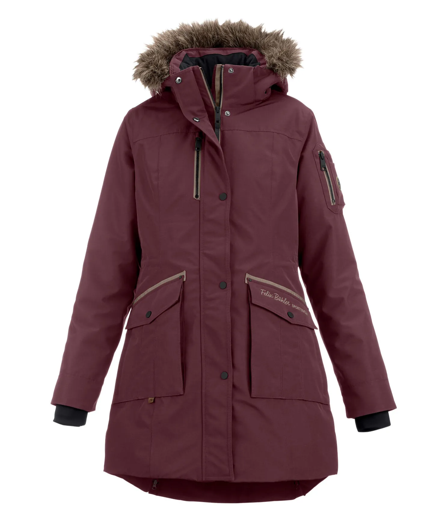 Parka d’équitation très chaude, solide et résistante aux intempéries. Capuche réglable et amovible par fermeture à glissière, pouvant être fixée dans le dos. Sa bordure en fausse « fourrure » est elle aussi amovible. Imperméable (10.000 mm), coupe-vent et respirante. Garnissage matelassé chaud en imitation duvet doux. 2 grandes poches à rabat avec poche latérale. 1 poche de poitrine zippée, 1 poche zippée sur la manche, 1 poche intérieure zippée, fermeture à glissière double sens dissimulée devant, 2 fentes cavalières zippées avec sous-patte à l’arrière, cordon de serrage à la taille, bas des manches avec finition bord-côte coupe-vent. Broderie et badge Felix Bühler. 100 % polyester.