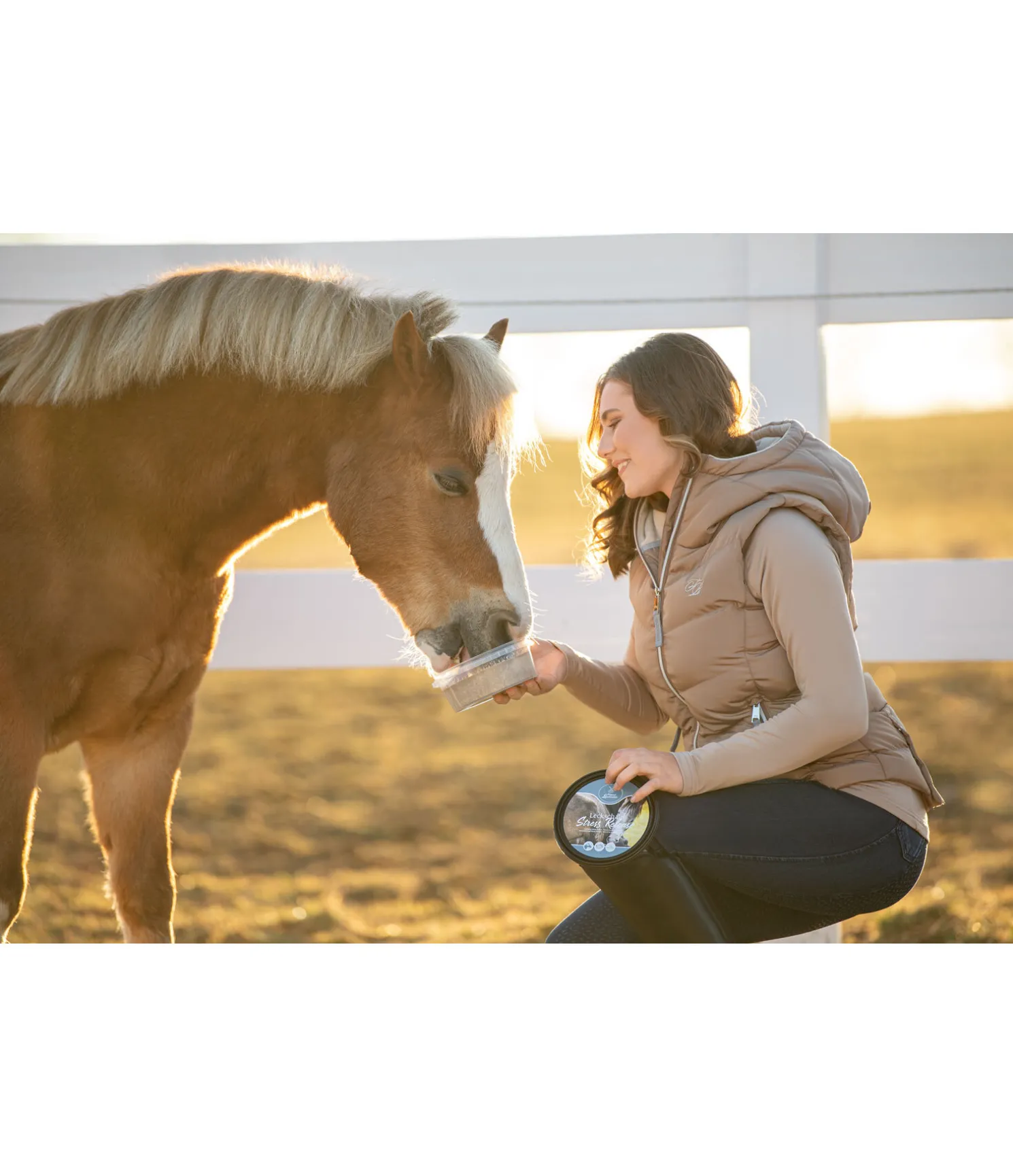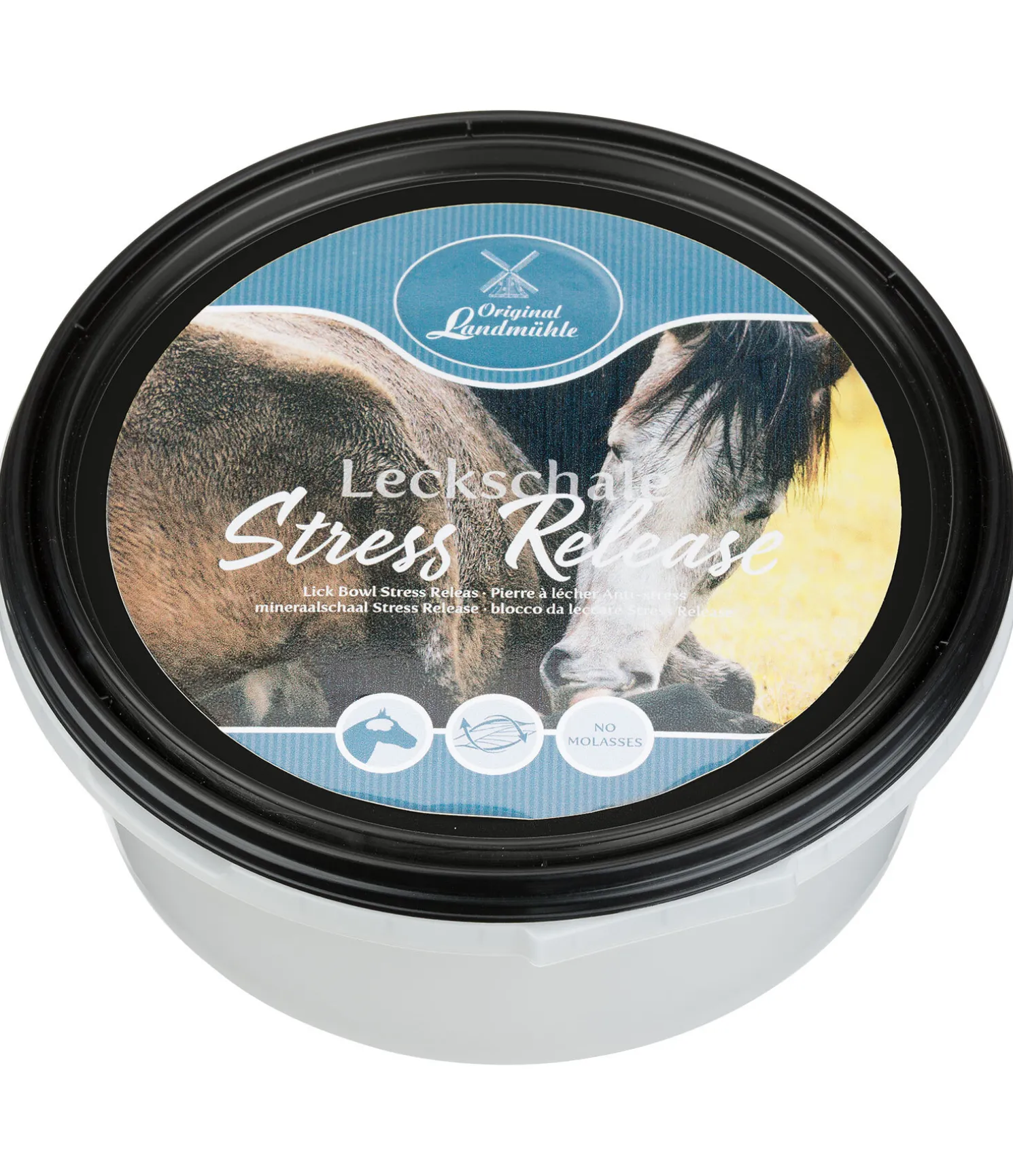 Idéale entre les repas ou pendant les soins des sabots : pierre à lécher en boîte hygiénique, contenant du magnésium et de la vitamine B12 pour soutenir la résistance au stress et le développement musculaire. Produit à base de dextrose, sans mélasse.